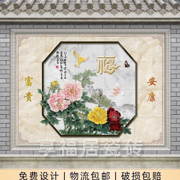 📚 村迎门墙福字瓷砖照壁别墅庭院影壁墙室外户外背景墙微晶石图案