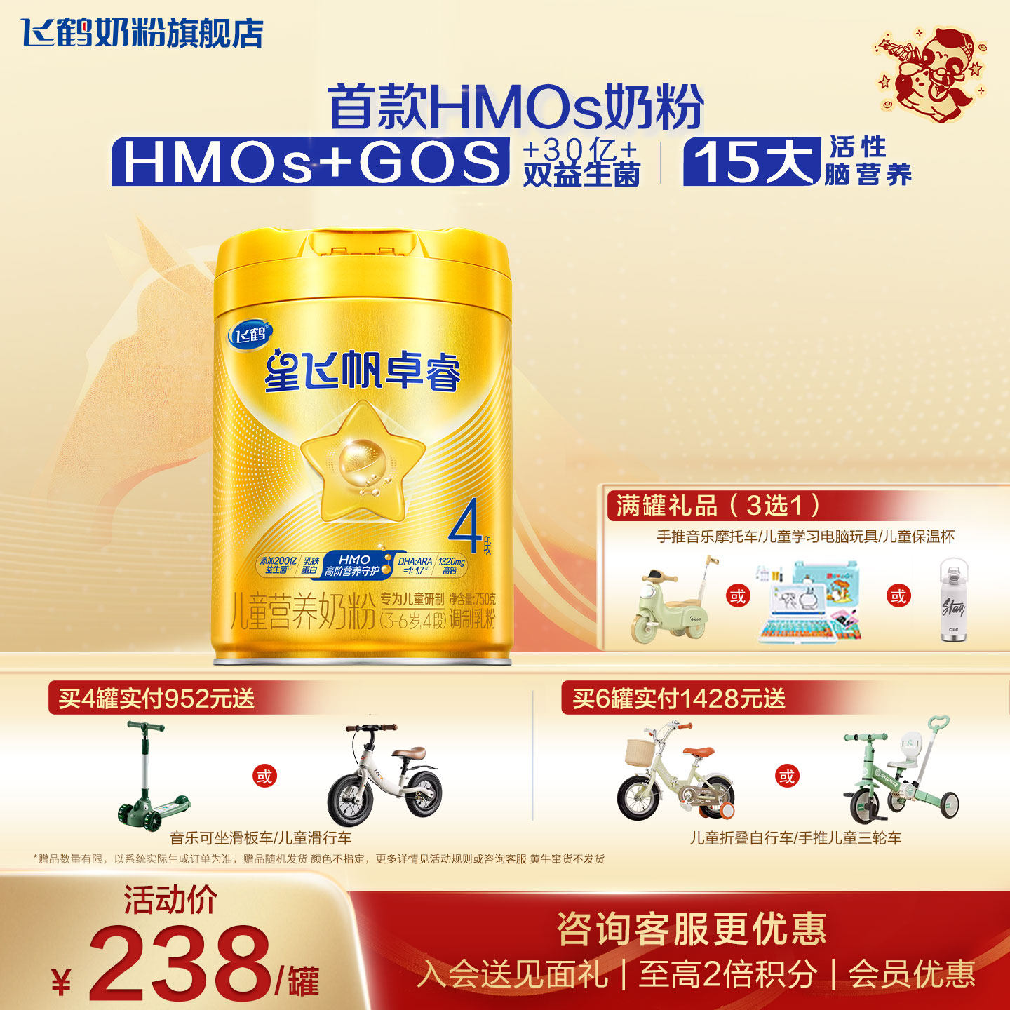 📚 飞鹤星飞帆卓睿4段奶粉旗舰店儿童成长学生四段3-6岁750g官方正品