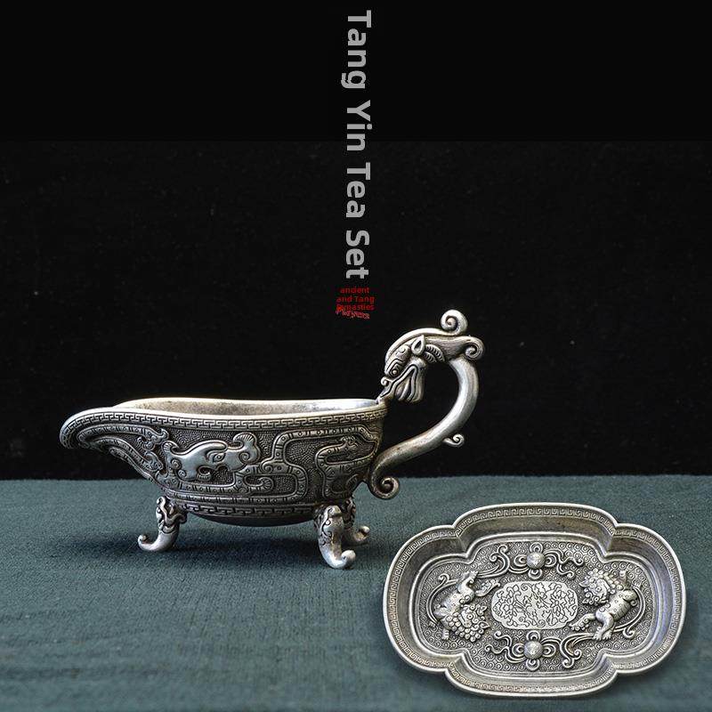 📚 唐朝银器摆件唐代鎏银碗茶具茶杯茶盅茶碟全铜镀银古典艺术品装饰