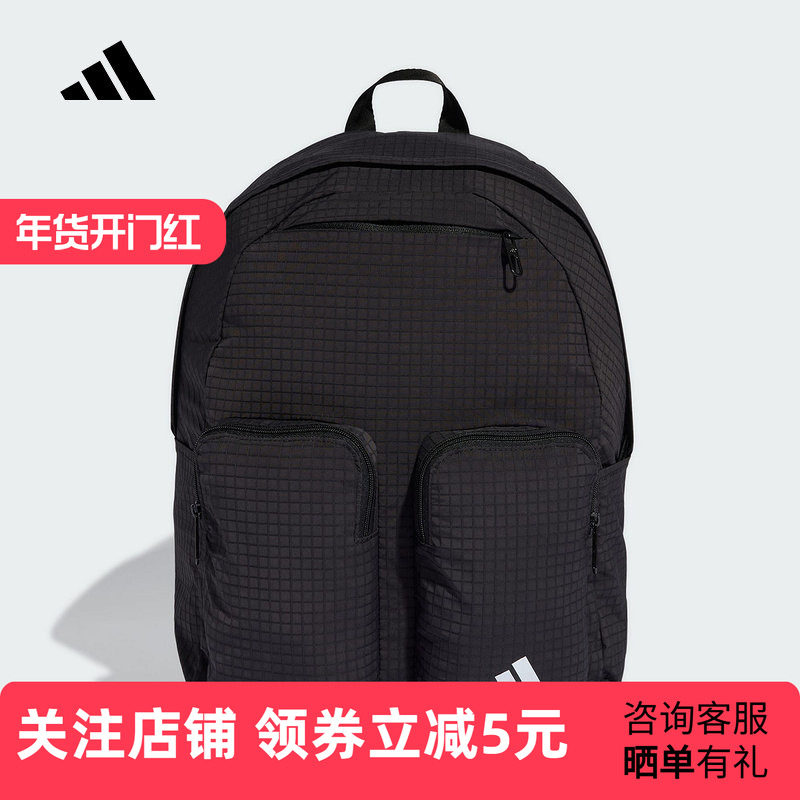 📚 adidas阿迪达斯ESSENTIALS书包2026春中性多仓黑色双肩背包KA6767