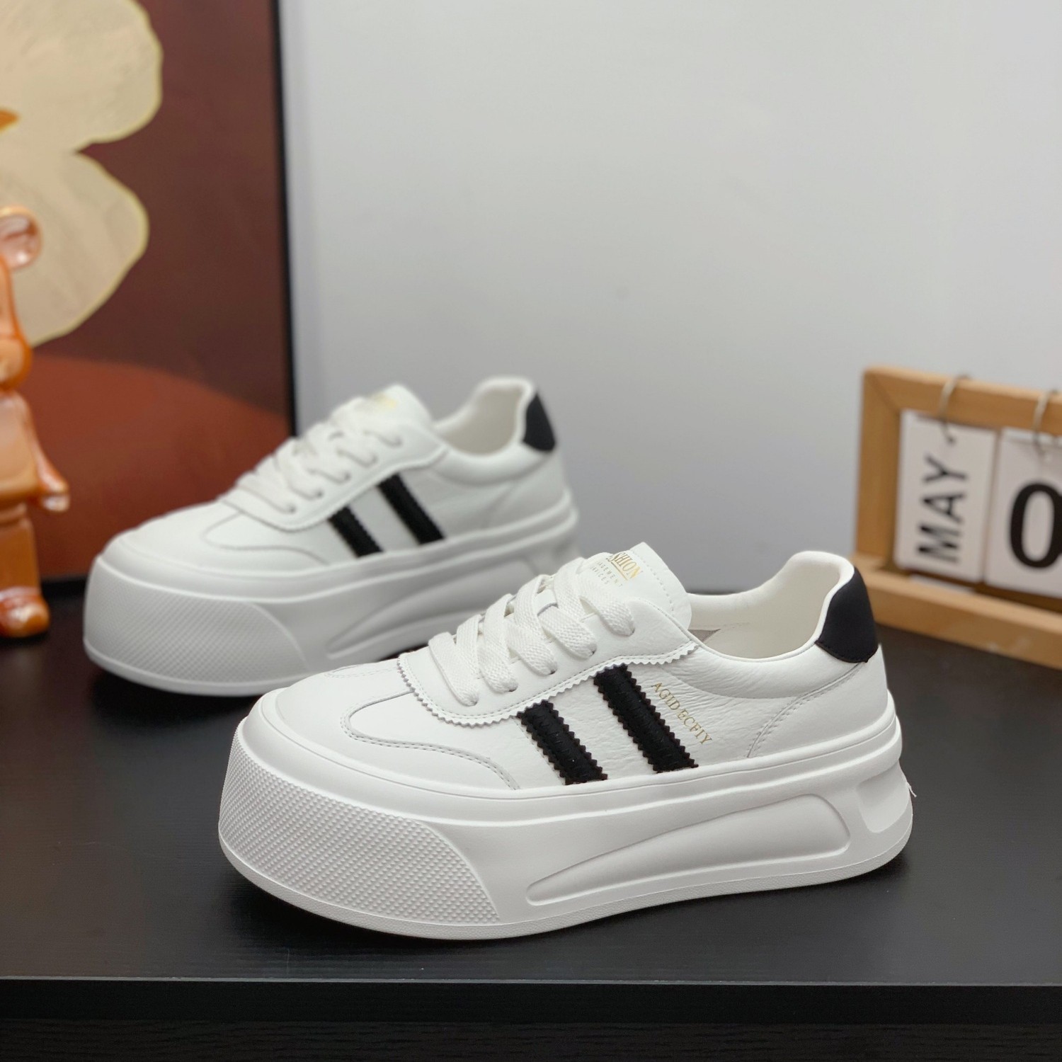 📚 小个子增高5cm厚底真皮小白鞋女款2026春季新款百搭休闲运动板鞋
