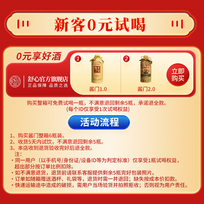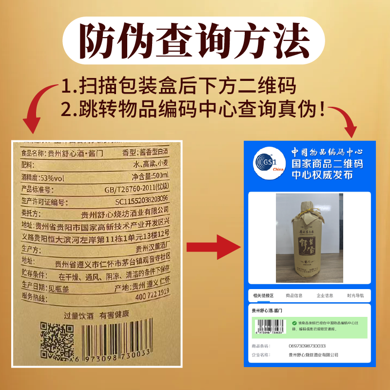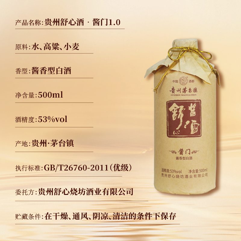 📚 舒心酱门1.0贵州酱香型白酒53度纯粮酿造固态发酵高度口粮白酒