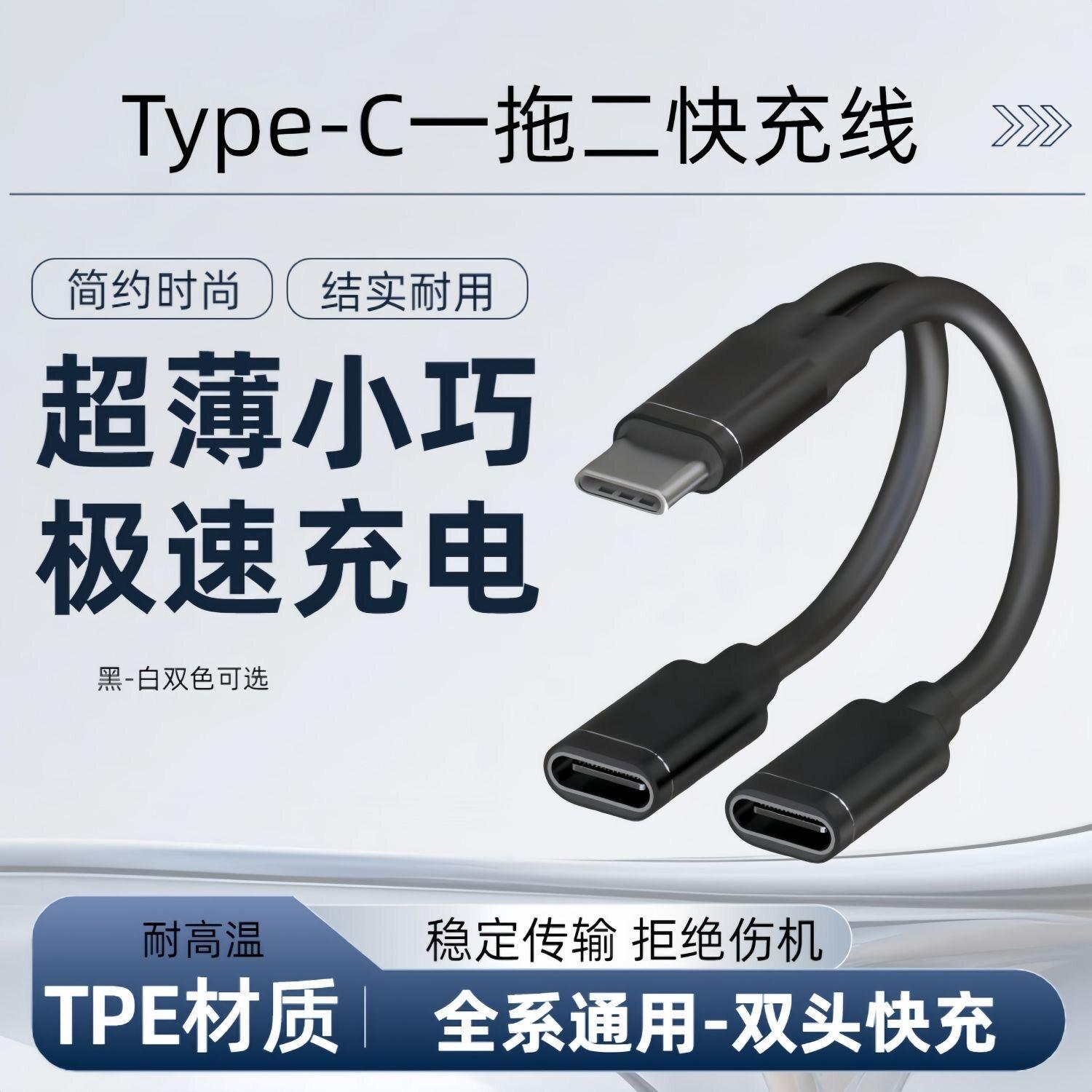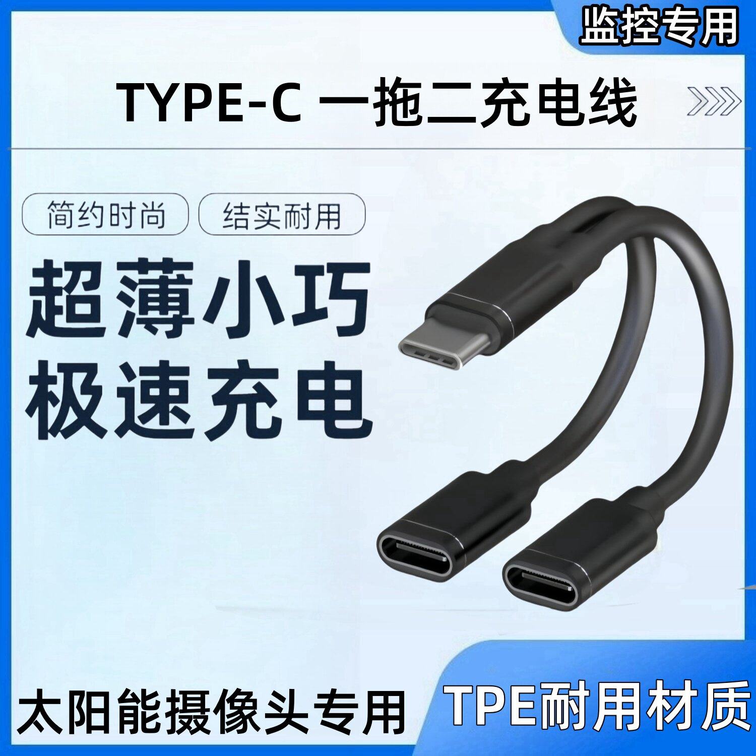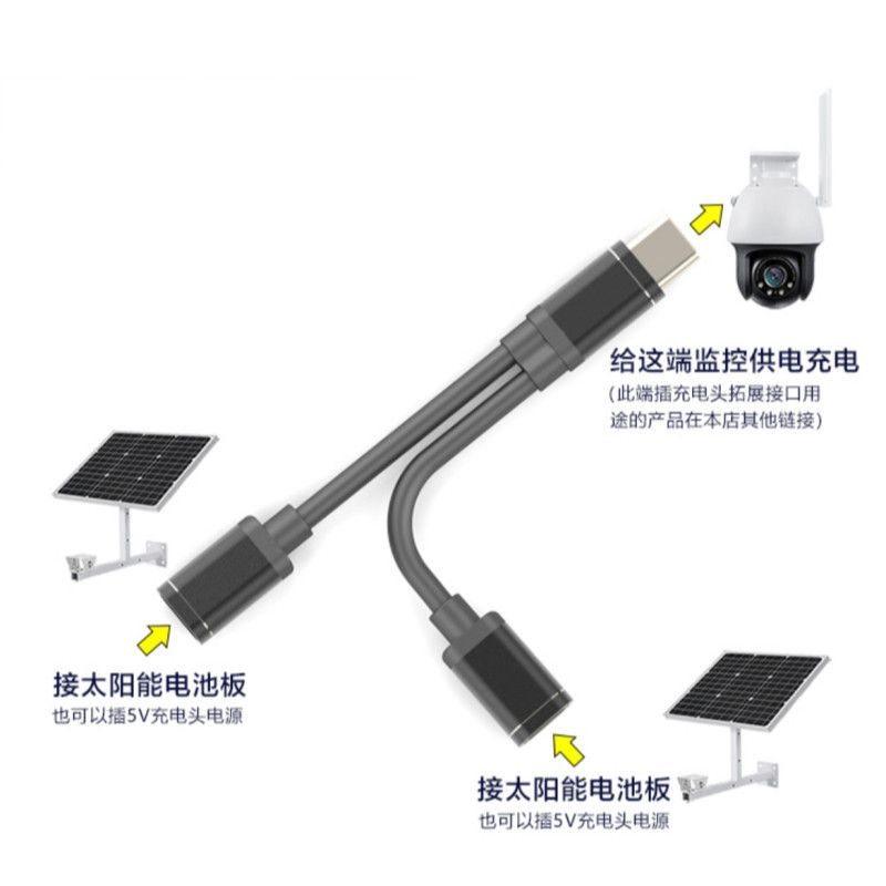 📚 全铜芯加粗太阳能双板专用type-c接口二合一监控充电线一分二公转母太阳能板充电线摄像头充电线带防水接头