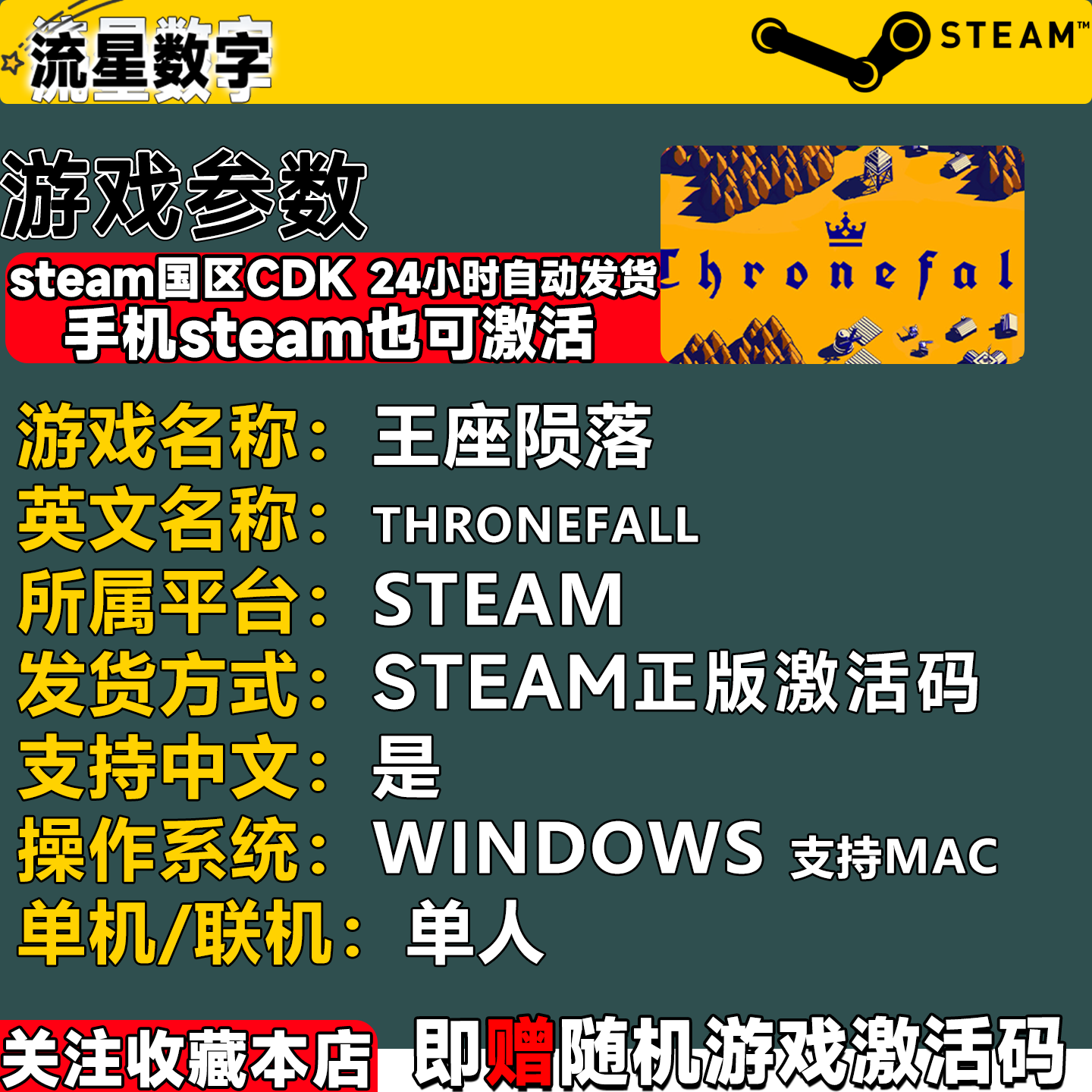 📚 Steam正版国区KEY 王座陨落 Thronefall 激活码CDKEY现货