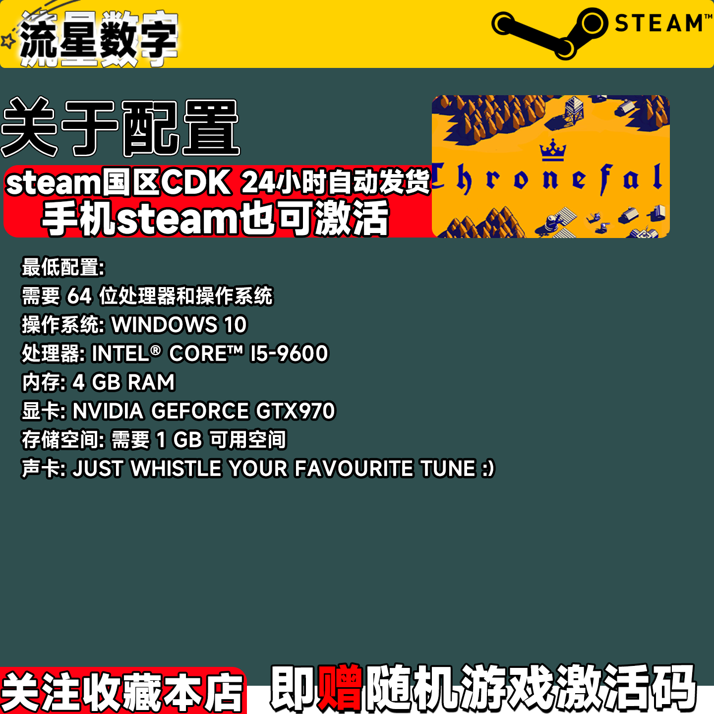 38¥ CZ005 X3Hy5TxSBHr¥ https://m.tb.cn/h.ipEbpET Steam正版国区KEY 王座陨落 Thronefall 激活码CDKEY现货 --------------------- 【原售价】36.3元 【现售价】36.3元。