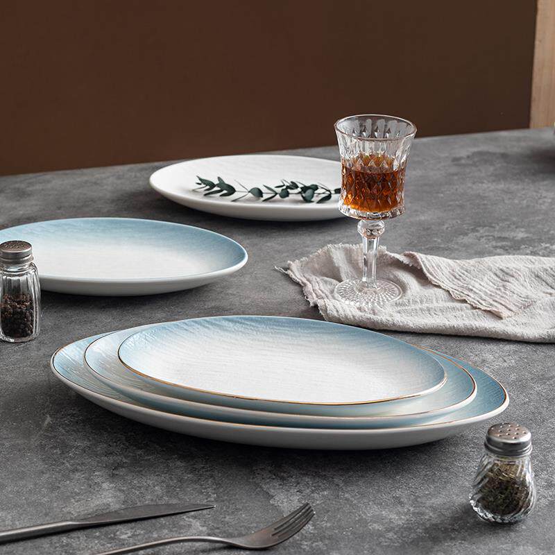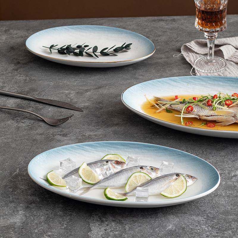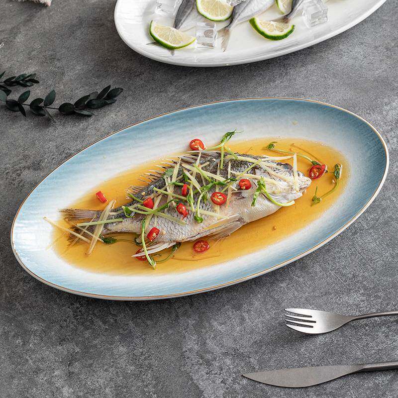 📚 中餐创意特色盘子餐具鱼盘家用北欧高级感10英寸椭圆陶瓷盘蒸鱼盘