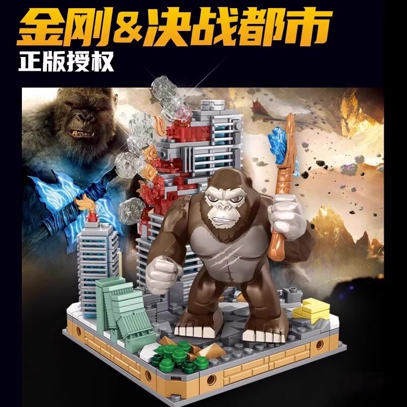 📚 潘洛斯积木大型哥斯拉金刚恐龙场景高难度益智拼装儿童玩具男孩