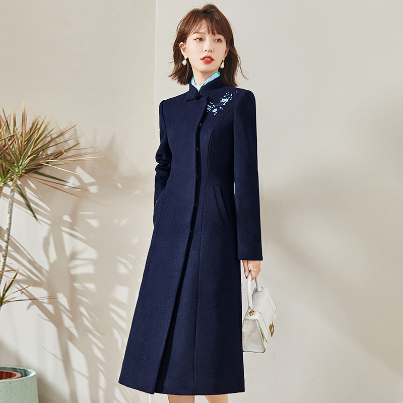 📚 中式领酒店茶楼迎宾毛呢女大衣中长款物业售楼处案场前台工作服