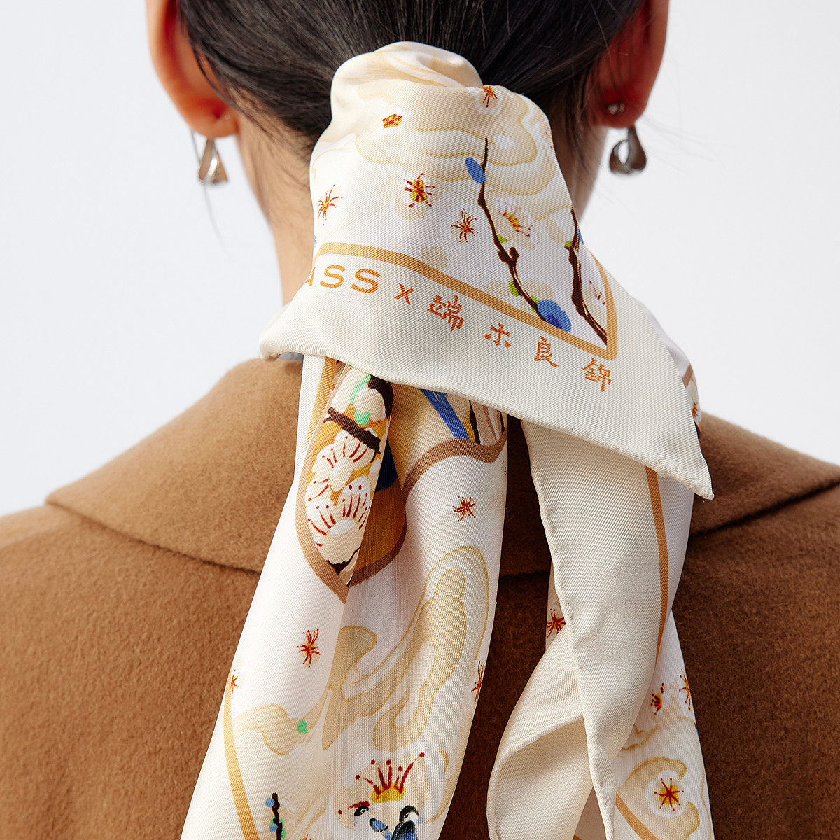 📚 【端木良锦联名】VGRASS鹊起云端喜鹊双面印花桑蚕丝方巾搭配礼物