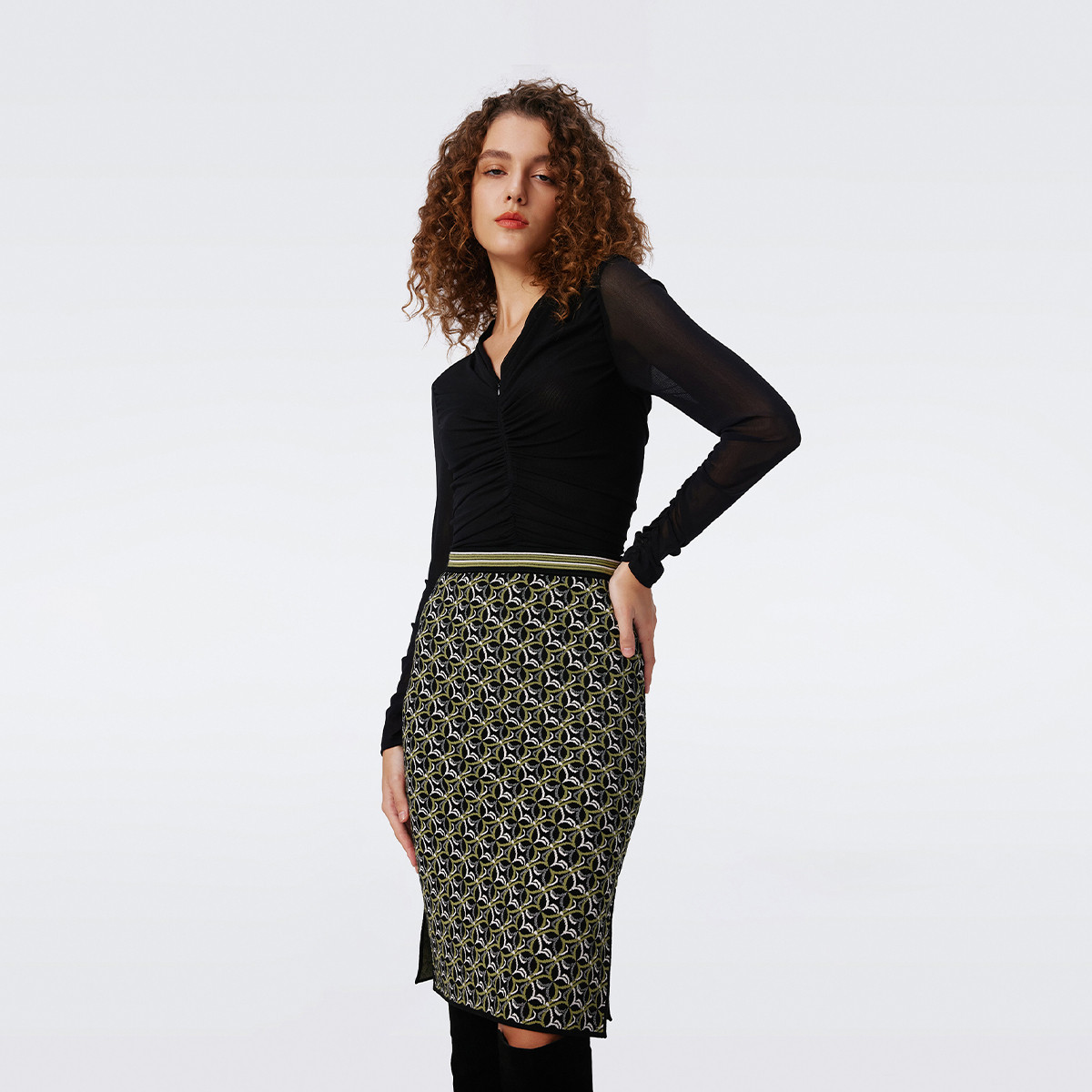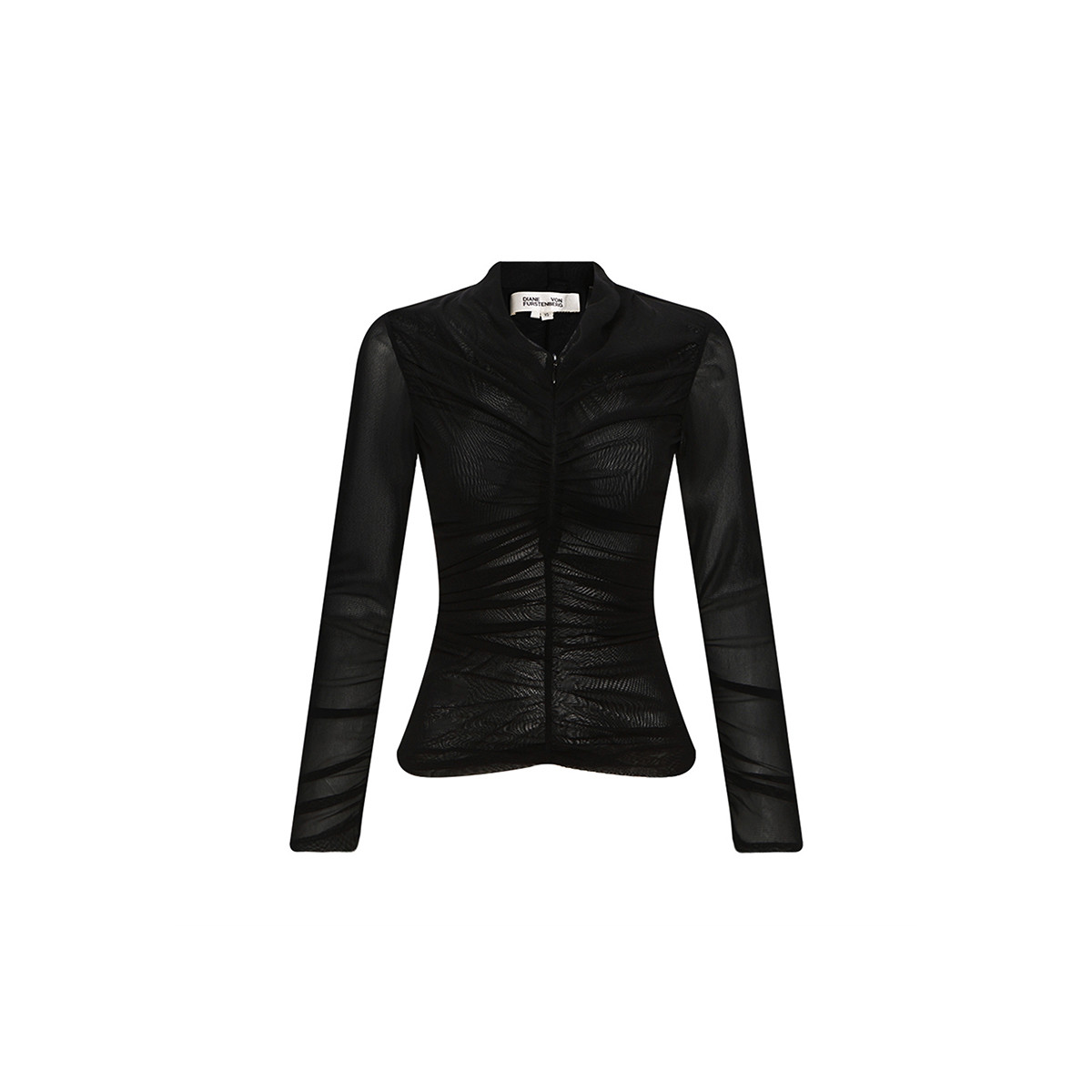 📚 [博主同款]DVF V领打底衫黑色弹力网纱通勤长袖打底上衣MR63E00