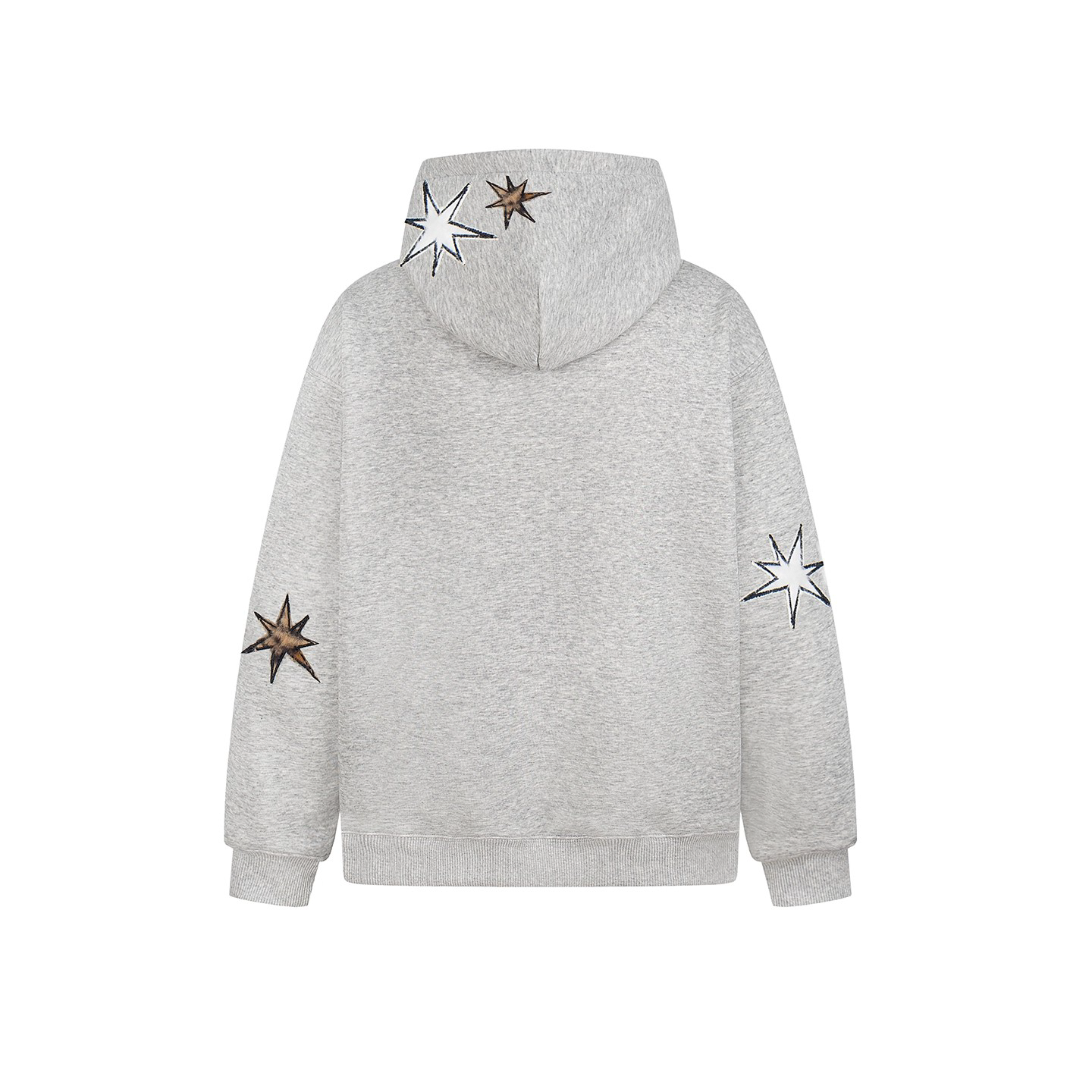 📚 FOCK美式复古豹纹星星贴布连帽卫衣男女2026新款宽松情侣百搭上衣
