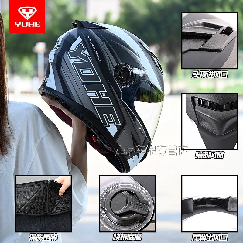📚 YOHE永恒官方电动摩托车头盔男女冬季保暖全盔四季机车旗舰安全帽