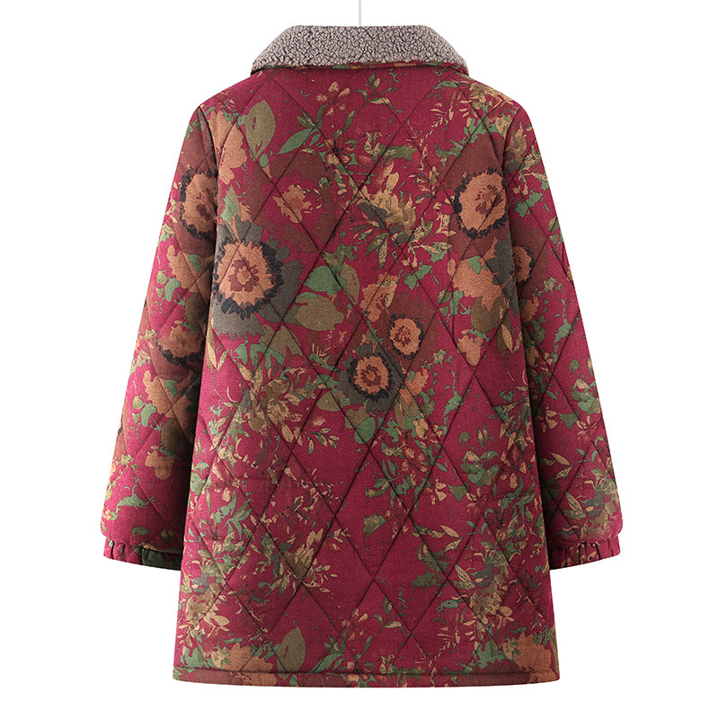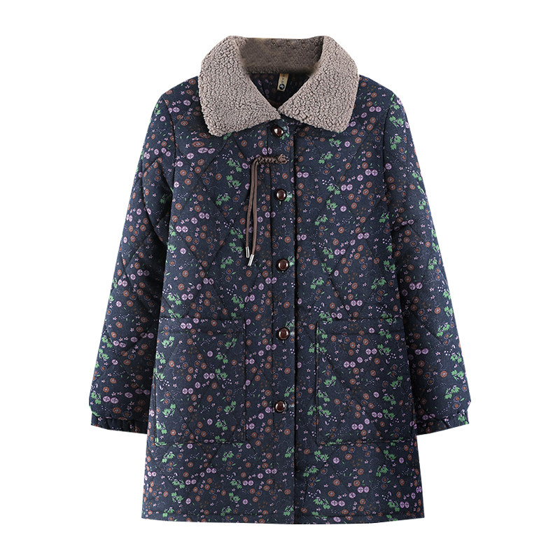📚 大码女装中长款印花加绒加厚棉服冬装翻领老太太保暖棉袄奶奶外套