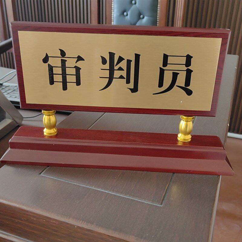 📚 木质金属拉丝面板柱子审判长法院桌牌法庭台牌桌签台签人名职位牌