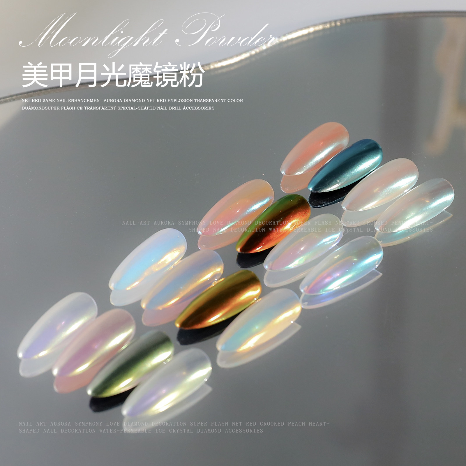 📚 魔镜粉美甲固态月光极光粉超闪镜面冰透墨镜粉极细粉末指甲装饰品
