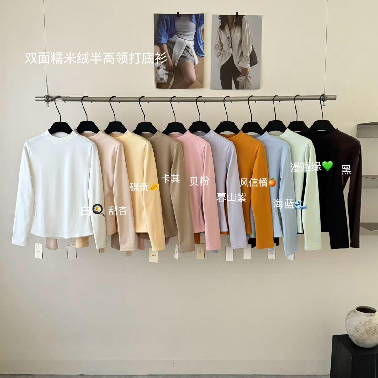 📚 冬上新!egg东大门 双面糯米绒纯色百搭半高领加绒打底衫上衣