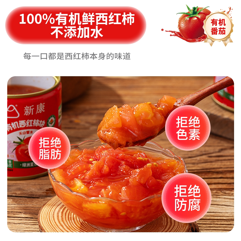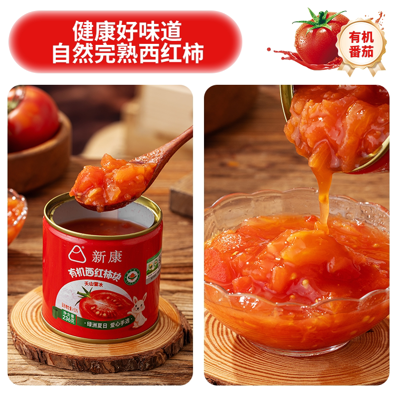 📚 新康有机西红柿块236g罐装番茄丁罐头无添加有机食品低脂开罐即食