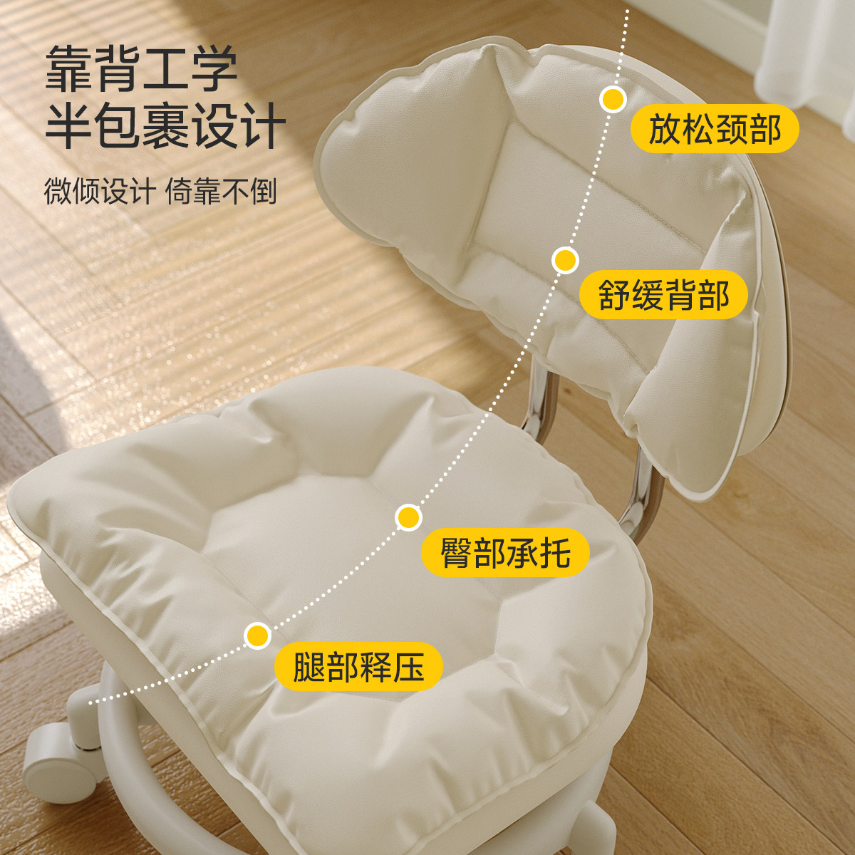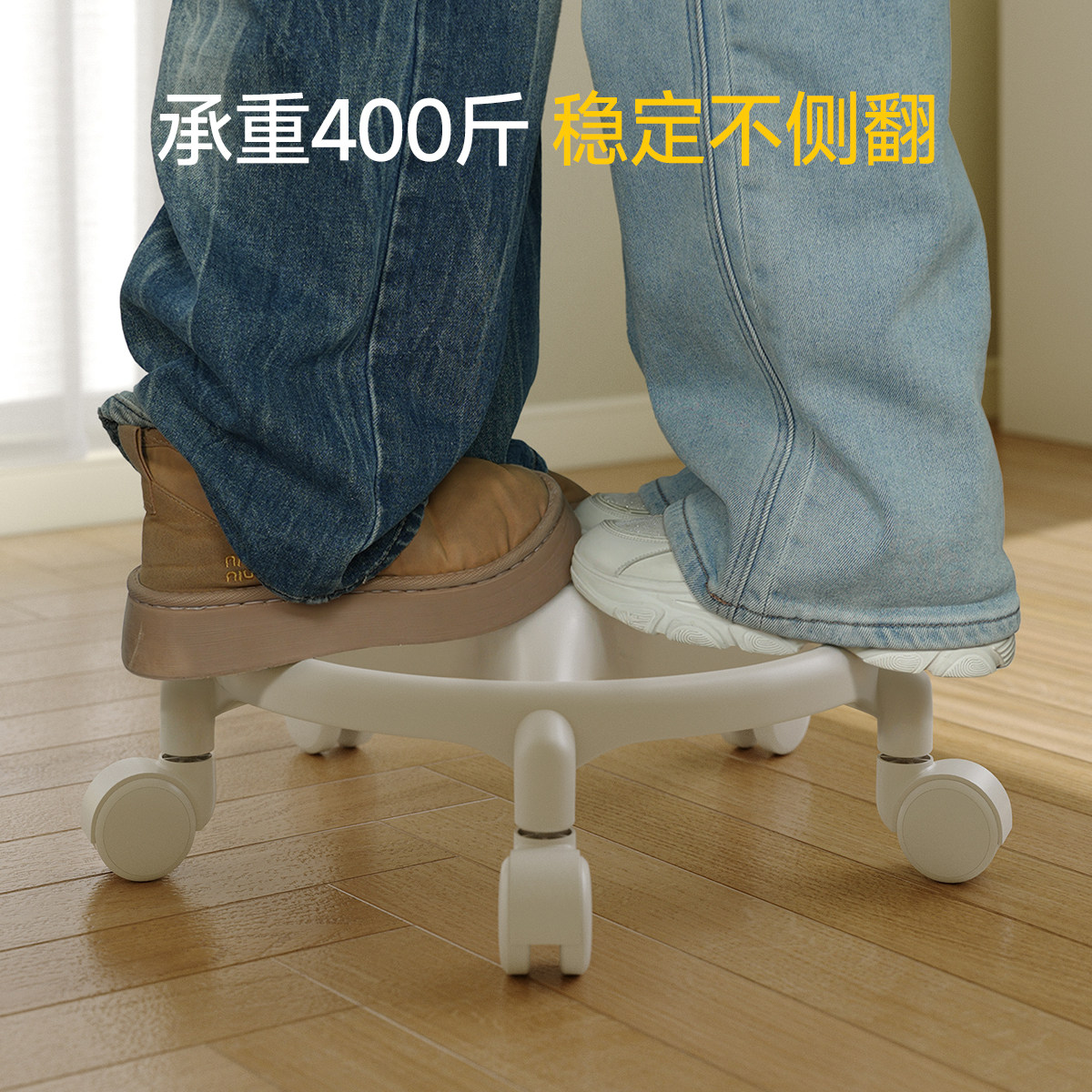 📚 三梦万向轮小凳子滑轮矮凳家用客厅儿童带轮板凳换鞋凳靠背小椅子