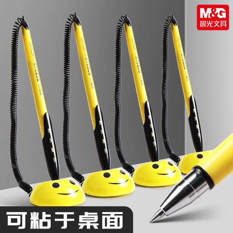 📚 晨光文具16103微笑台笔0.5mm创意吧台笔办公签字笔带线固定笔座可粘笔粘桌子中性笔黑色水笔银行台式签字笔