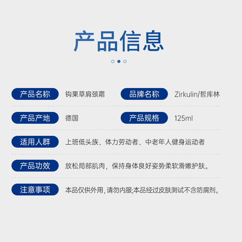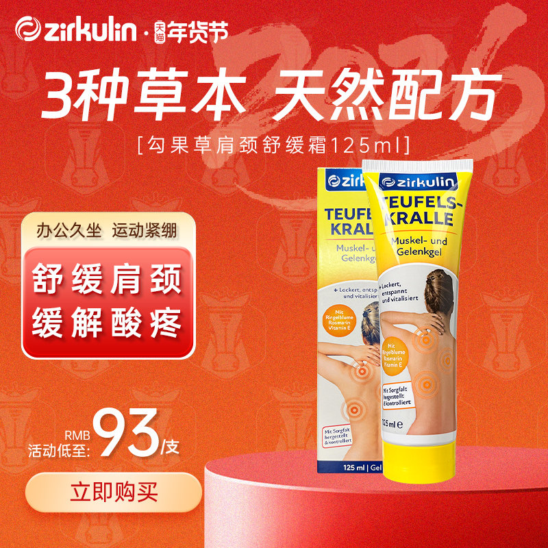 📚 德国进口zirkulin哲库林进口勾果草肩颈霜凝胶缓解疲劳125ml/支