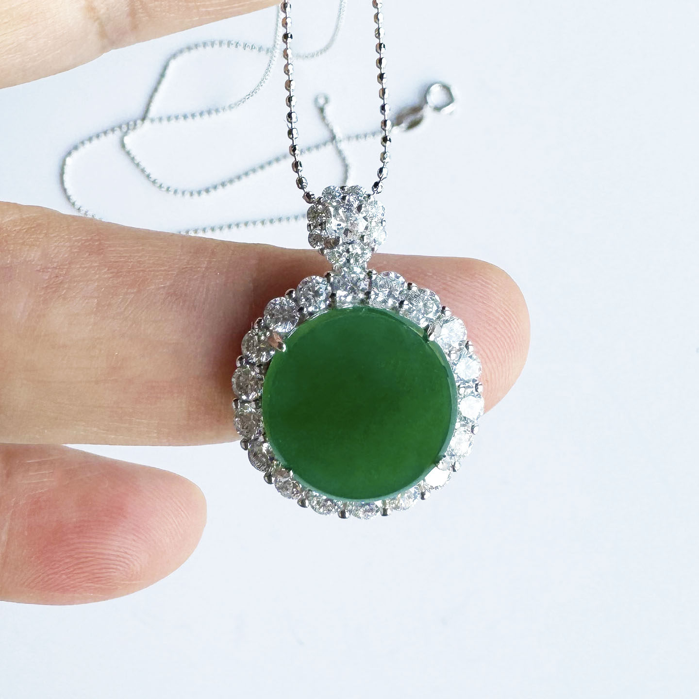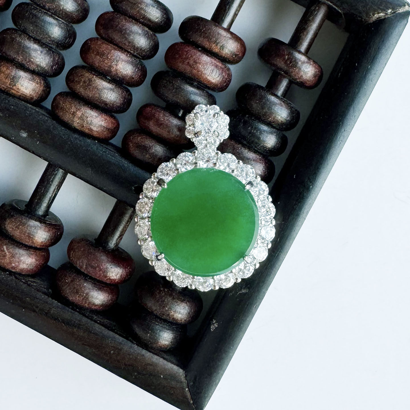 🎁“翡翠林”的神秘魅力,让我瞬间被种草!这款缅甸冰种阳绿圆牌无事牌吊坠,简直是天然A货正品翡翠的完美呈现。💎