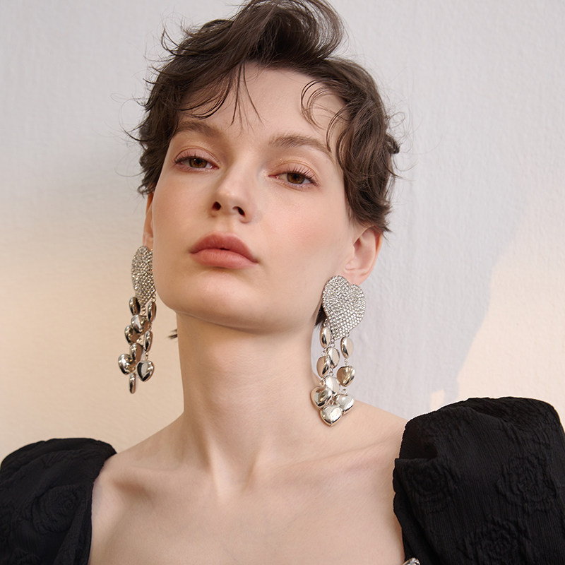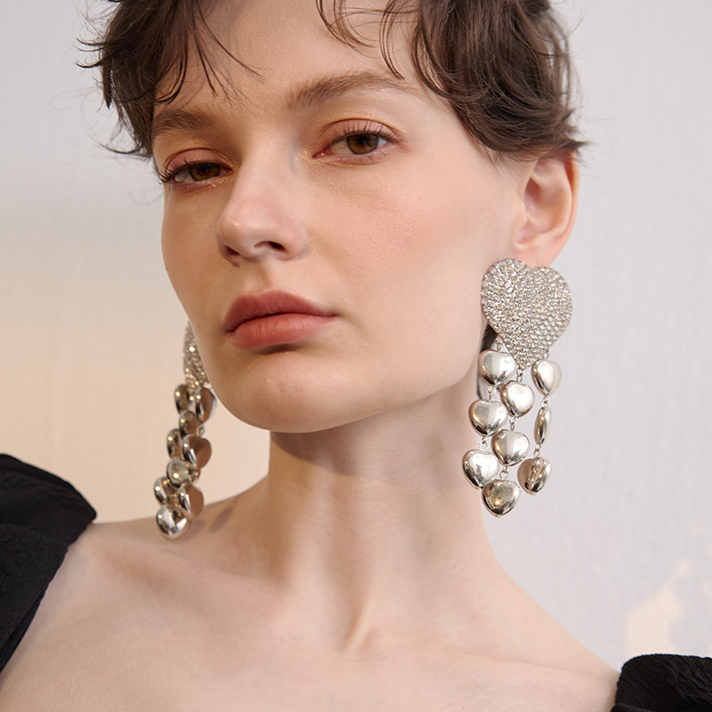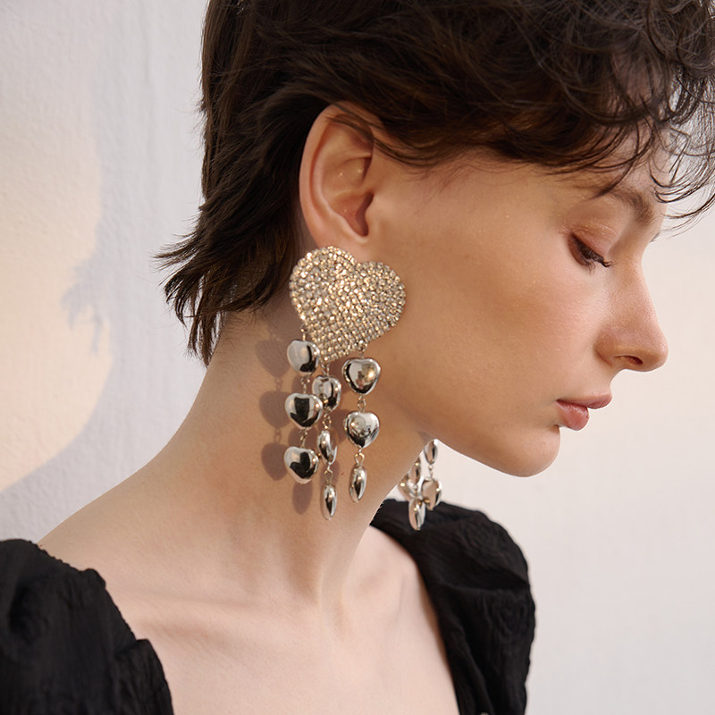 📚 欧美女金属夸张大耳环流苏耳坠长款复古耳饰爱心桃心爆闪夜店985