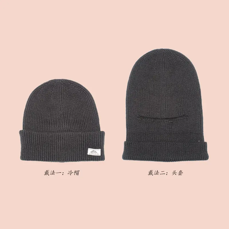 📚 两用克拉法帽子男秋冬季针织套头冷帽加厚保暖护耳包头堆堆帽