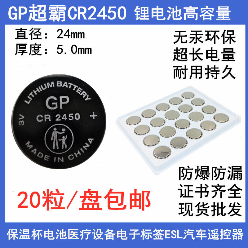 📚 高容量GP超霸CR2450菜鸟溪鸟多多兔喜驿站灯条车钥匙遥控器保温杯