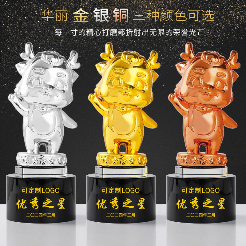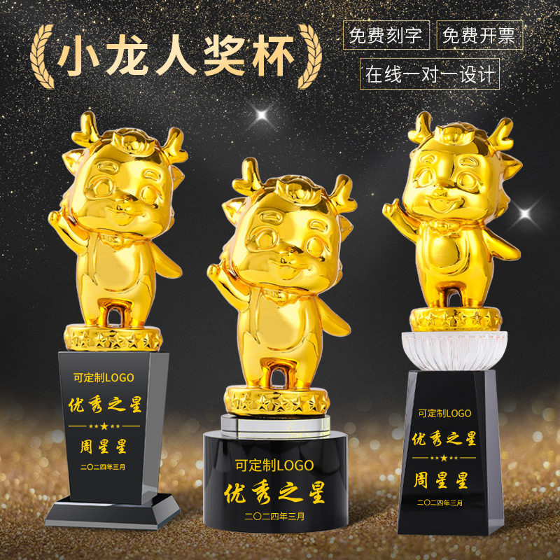 📚 龙年造型树脂奖杯定制创意卡通人物年会颁奖优秀员工销冠团队奖品