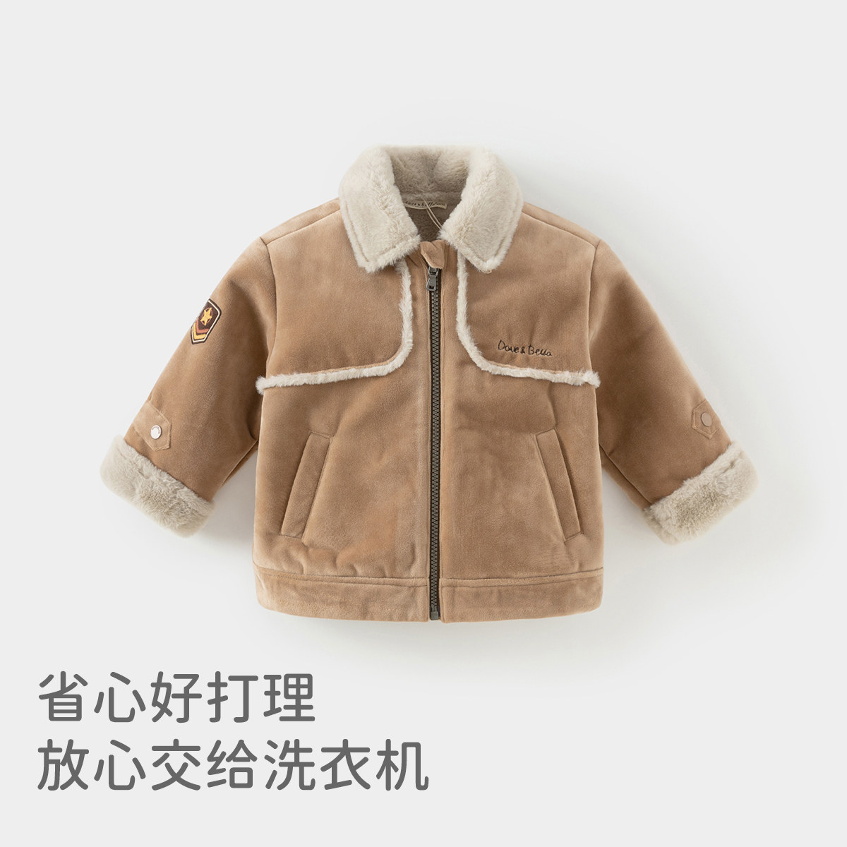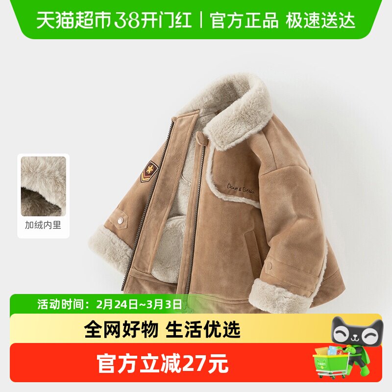 📚 戴维贝拉儿童麂皮绒外套2025冬装新款男童加绒外衣宝宝童装衣服