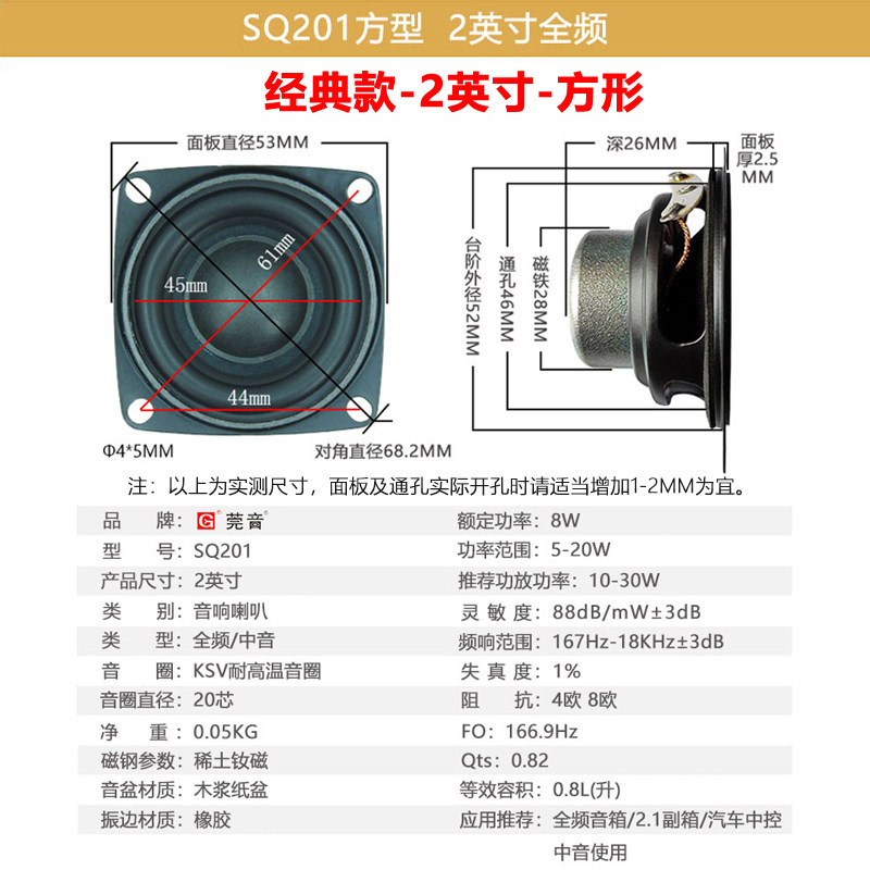 📚 莞音2寸全频喇叭 diy钕铁硼纸盆扬声器 发烧级中音喇叭音箱改装