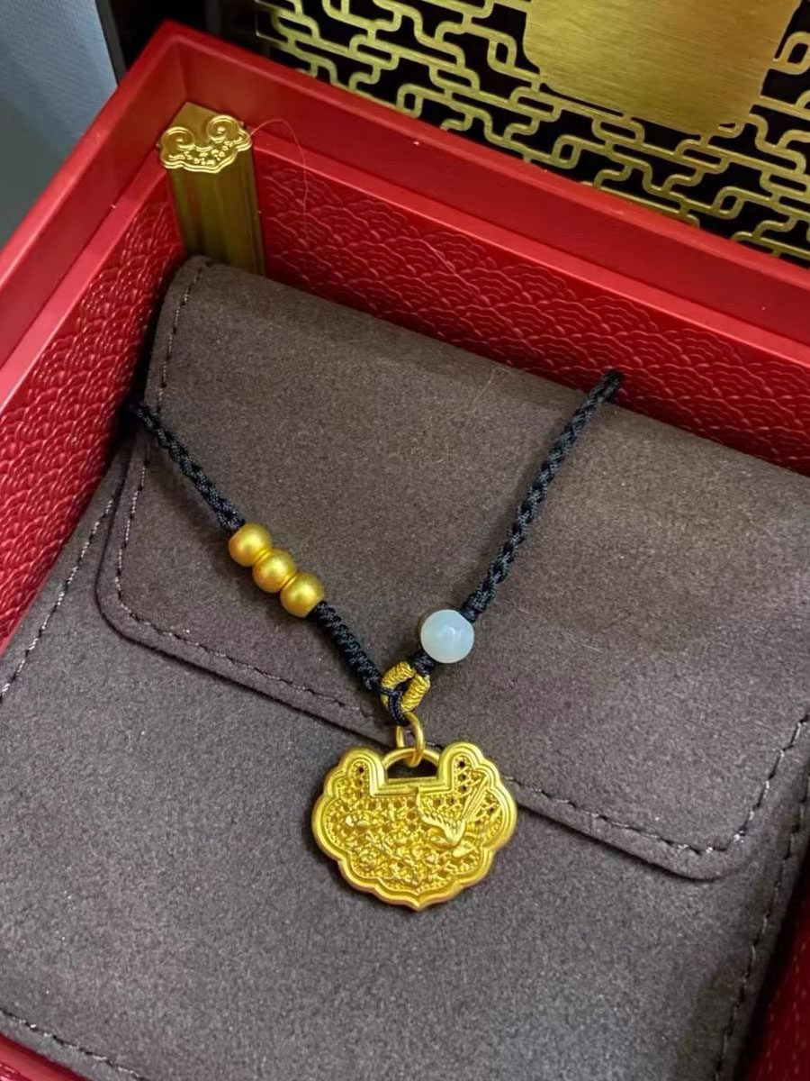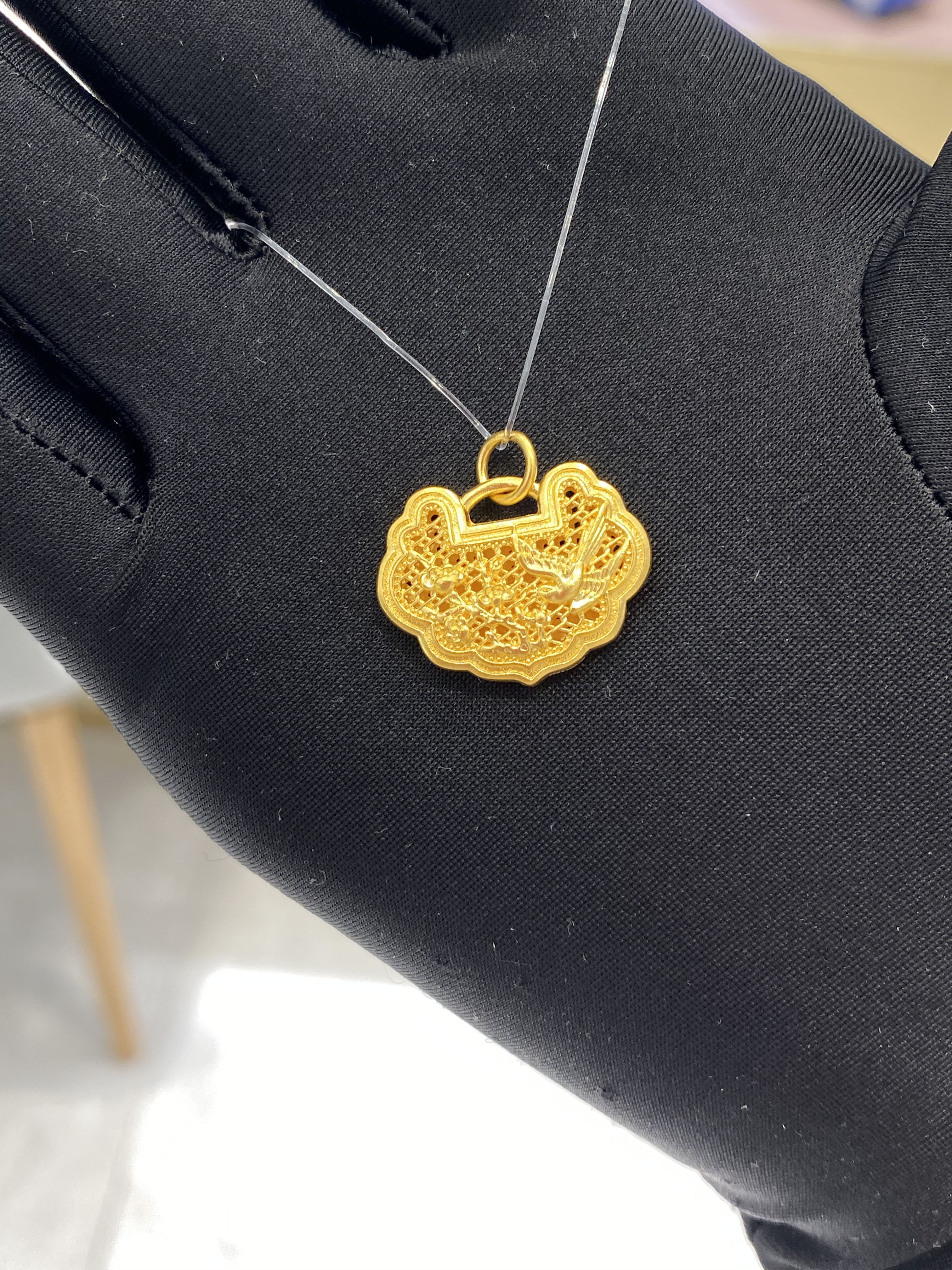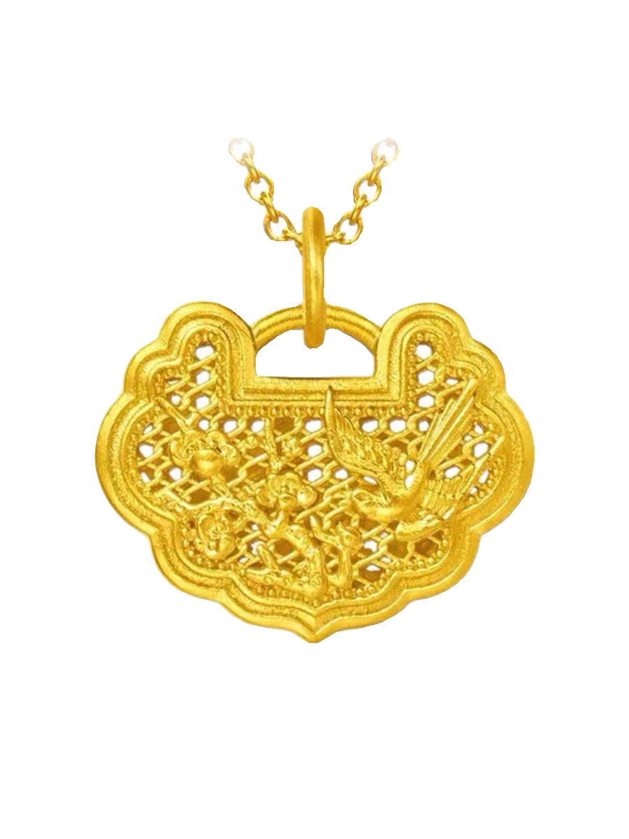📚 周大福传承喜上眉梢喜鹊梅花锁竹纹锁金蕊流霞长命宝宝锁足金吊坠