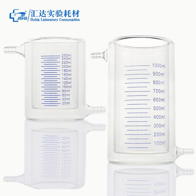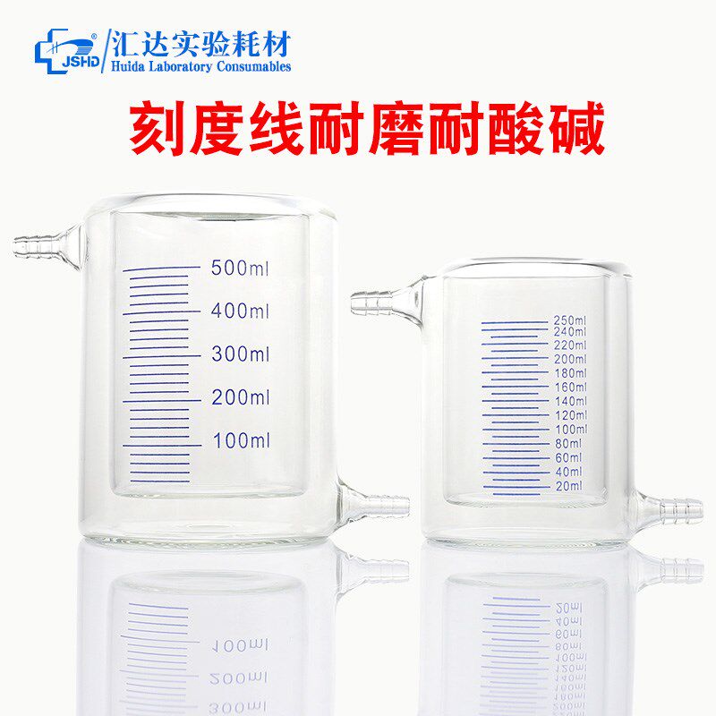 📚 汇达夹套烧杯 双层玻璃光催化反应器 上下嘴广口敞口玻璃烧杯50/1