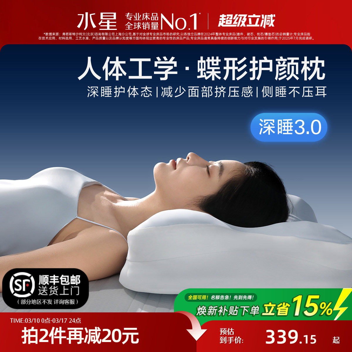 📚 水星家纺人体工学枕蝶形枕头记忆棉深睡颈椎枕芯礼盒装辅助睡眠