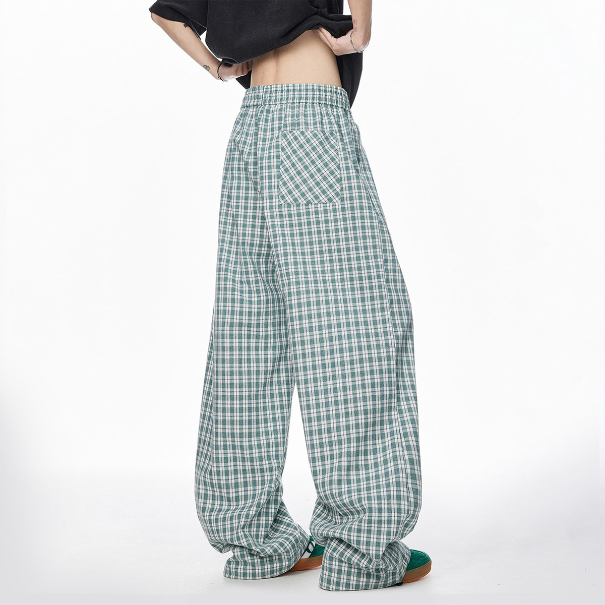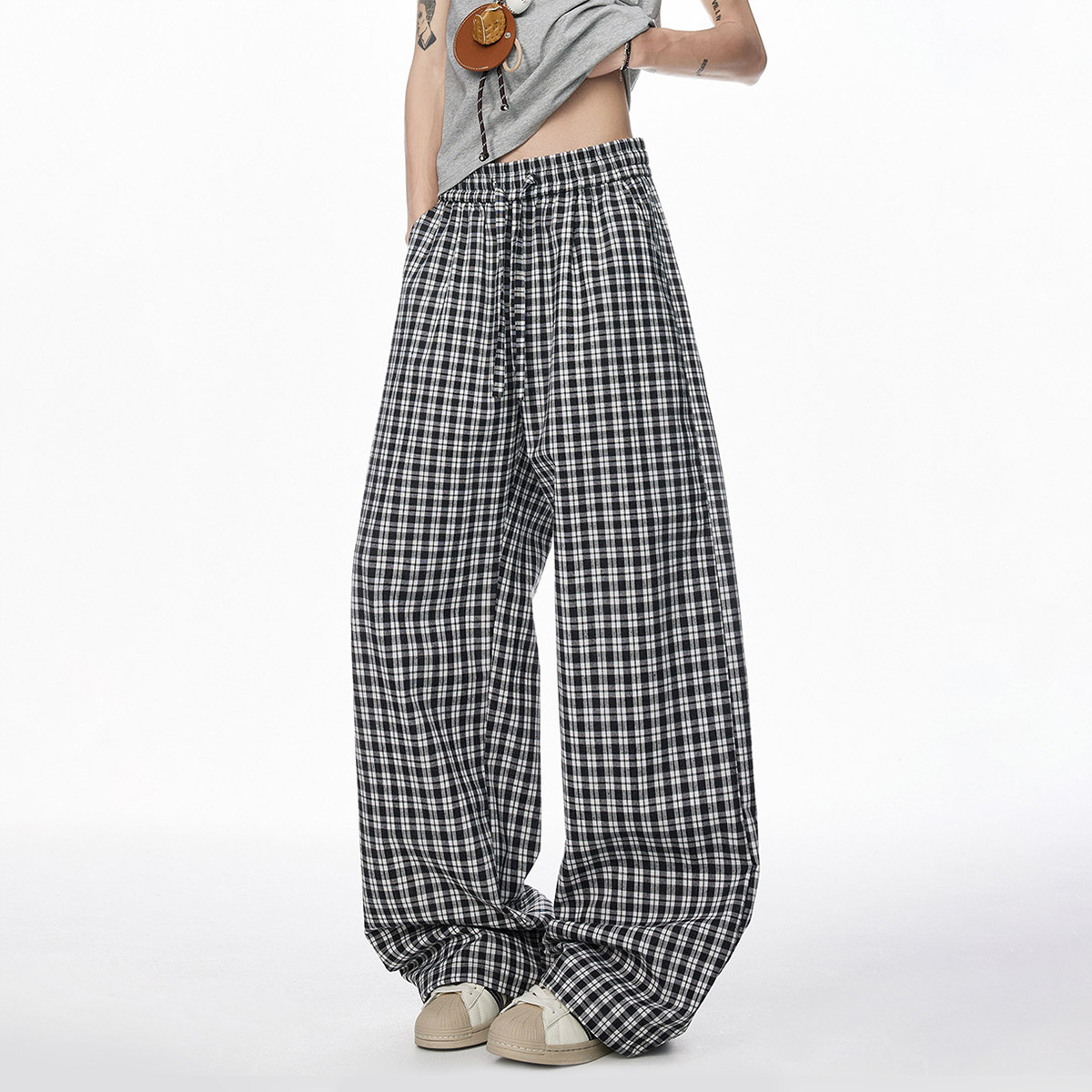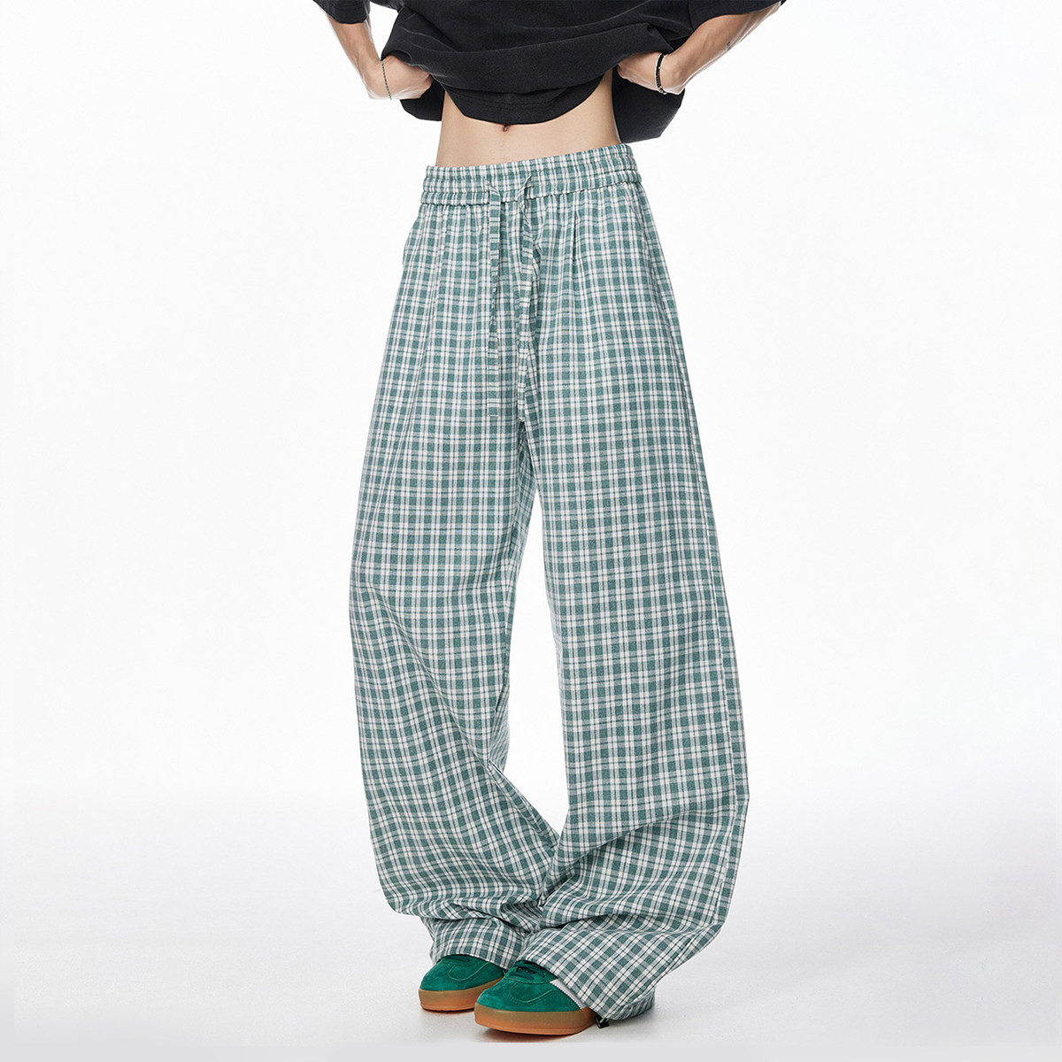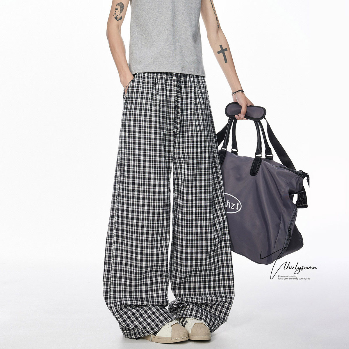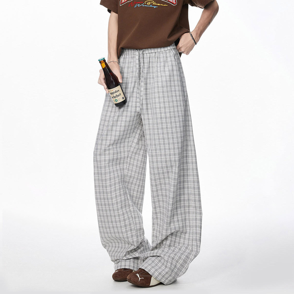 📚 V37日系格子阔腿裤子男款2026初春流行穿搭青少年宽松显瘦休闲裤