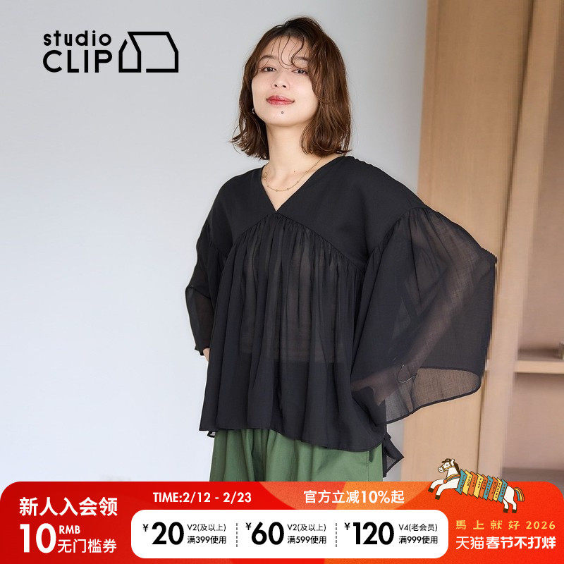 📚 studio CLIP衬衫女2025年夏季新款时尚气质纯色V领上衣289928