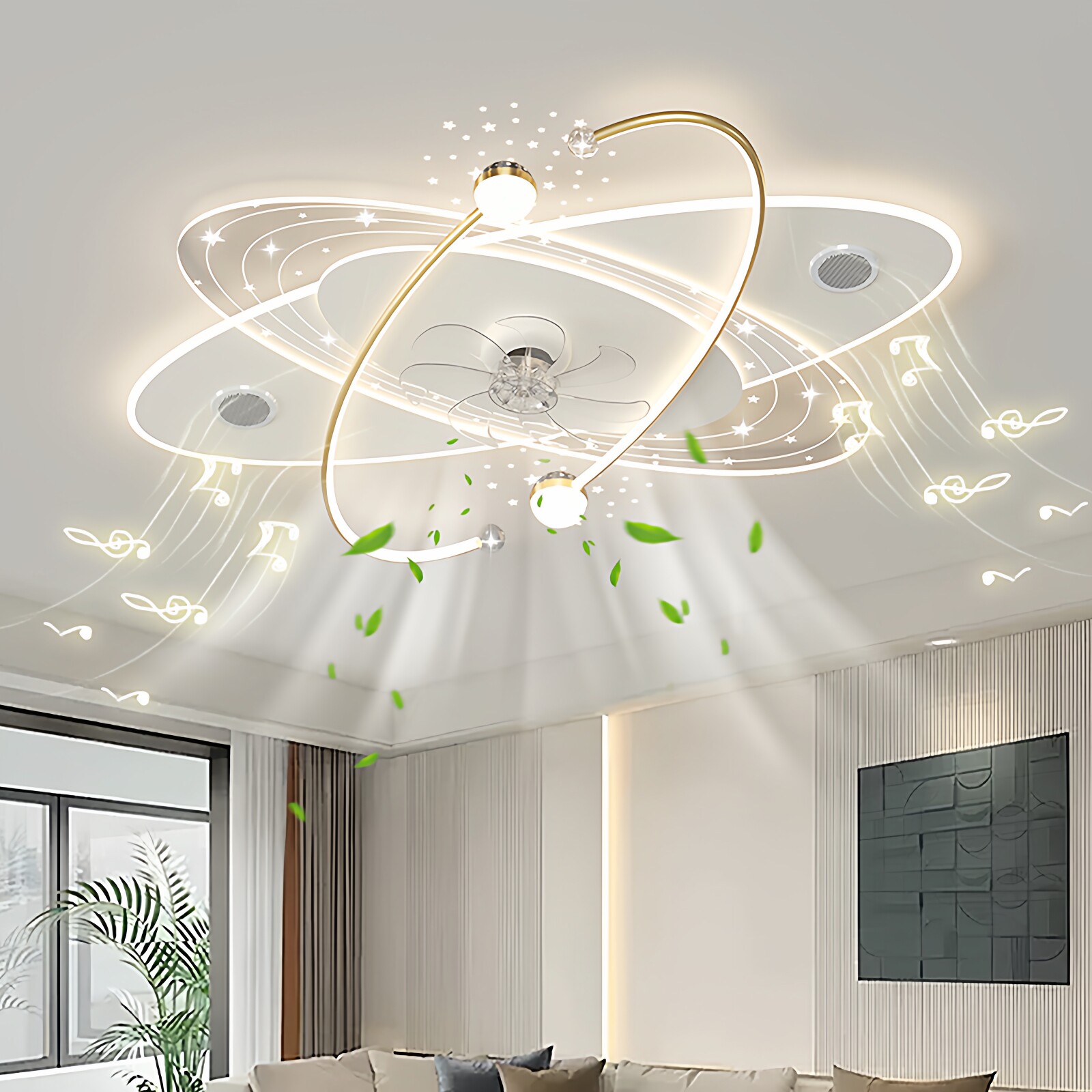 📚 蓝牙音乐客厅风扇灯2025新款灯具现代简约家用餐厅卧室吸顶吊扇灯