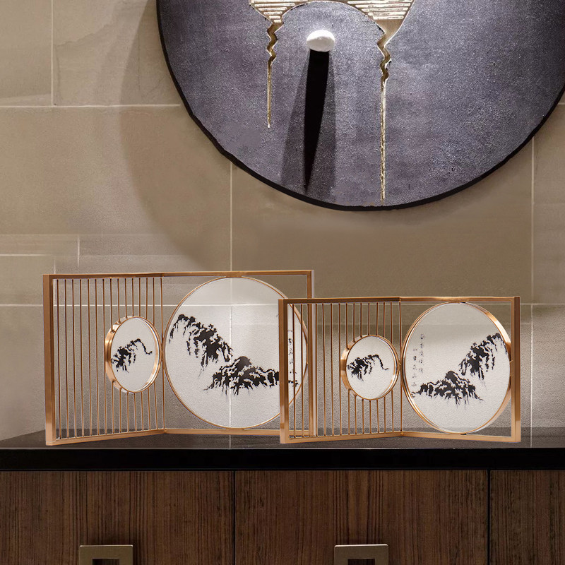 📚 创意新金属山景客厅玄关书房电视柜样板房小屏风摆设