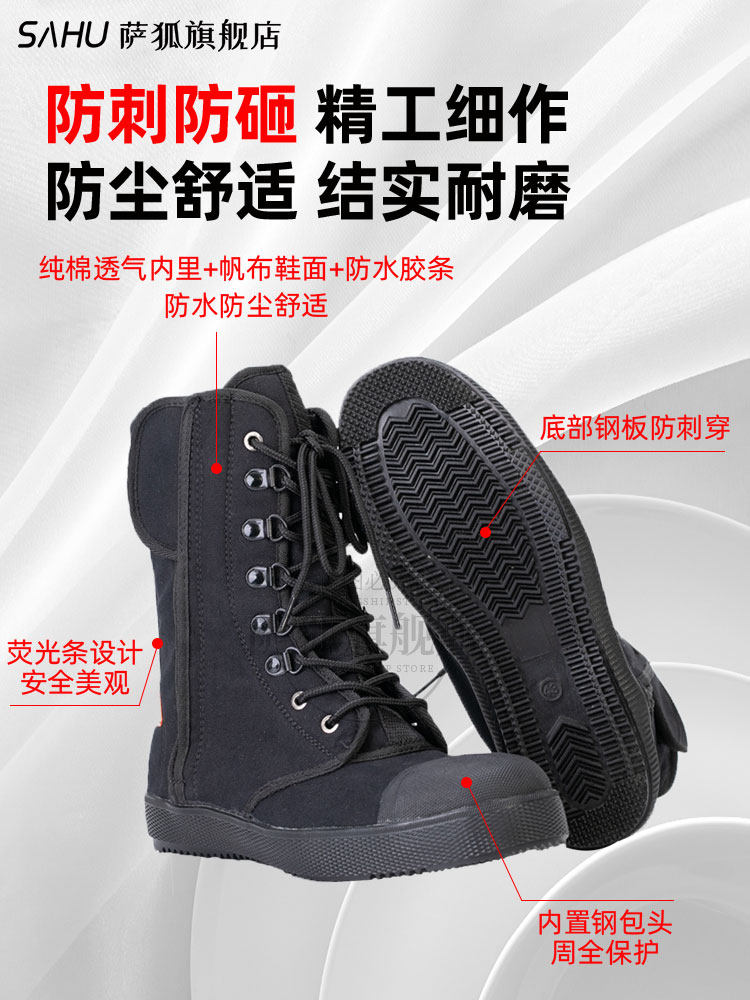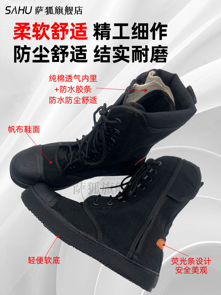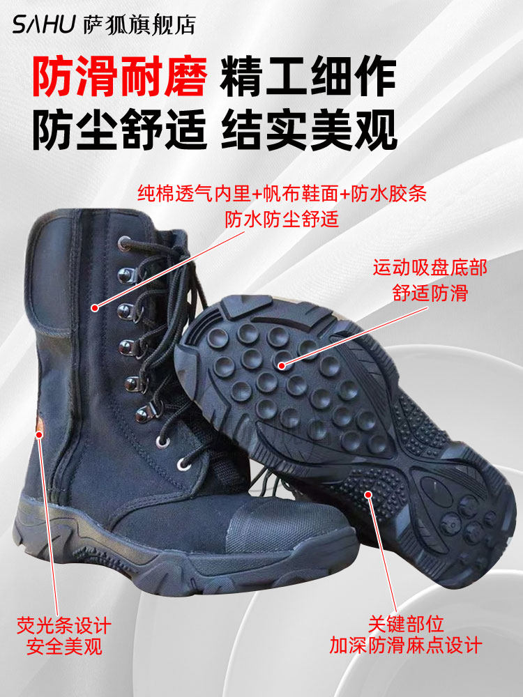 📚 消防训练靴消防比武爬绳登高抢险救援靴轻便防滑帆布森林扑火鞋