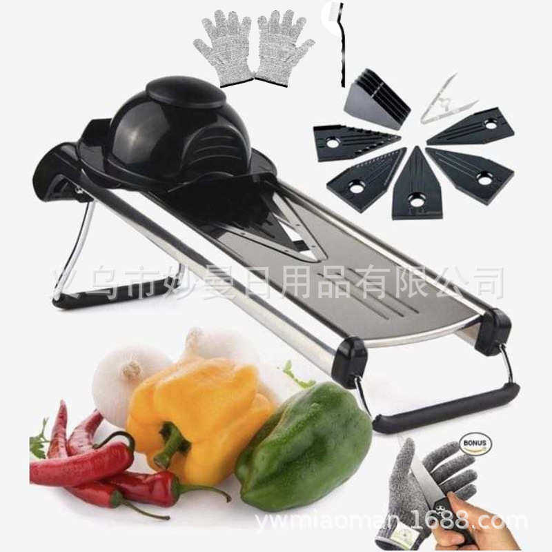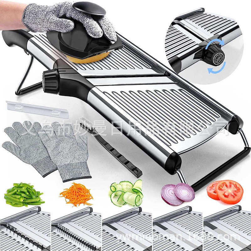 📚 不锈钢多功能切菜器套装曼陀林刨丝器切片器加防割手套清洁刷