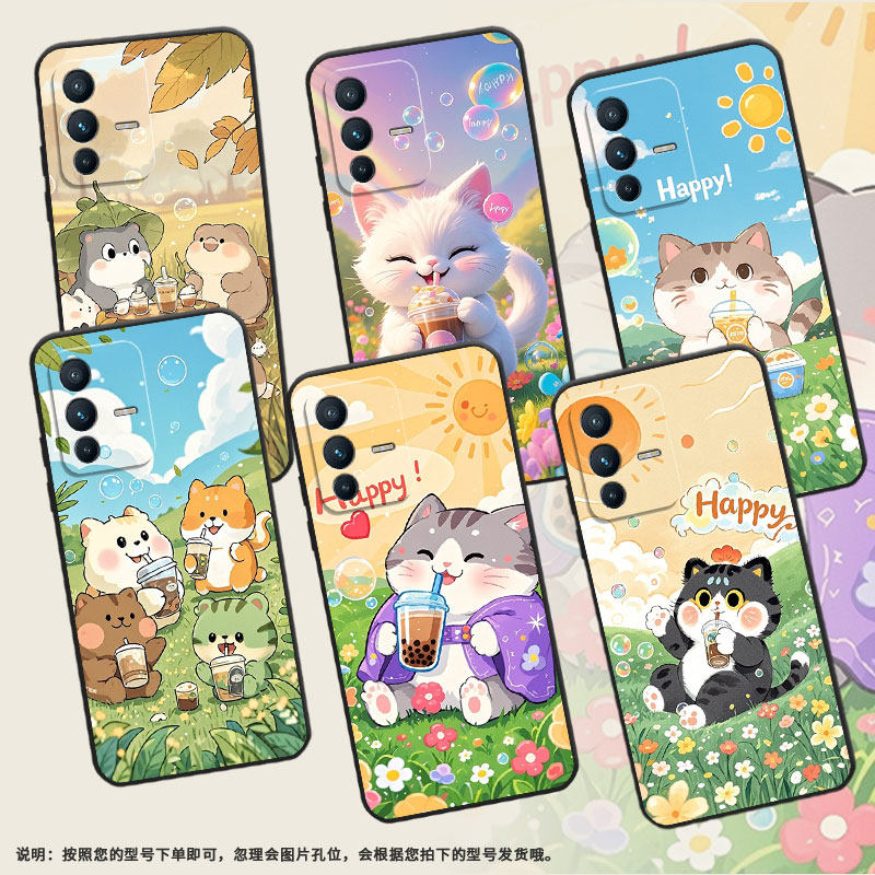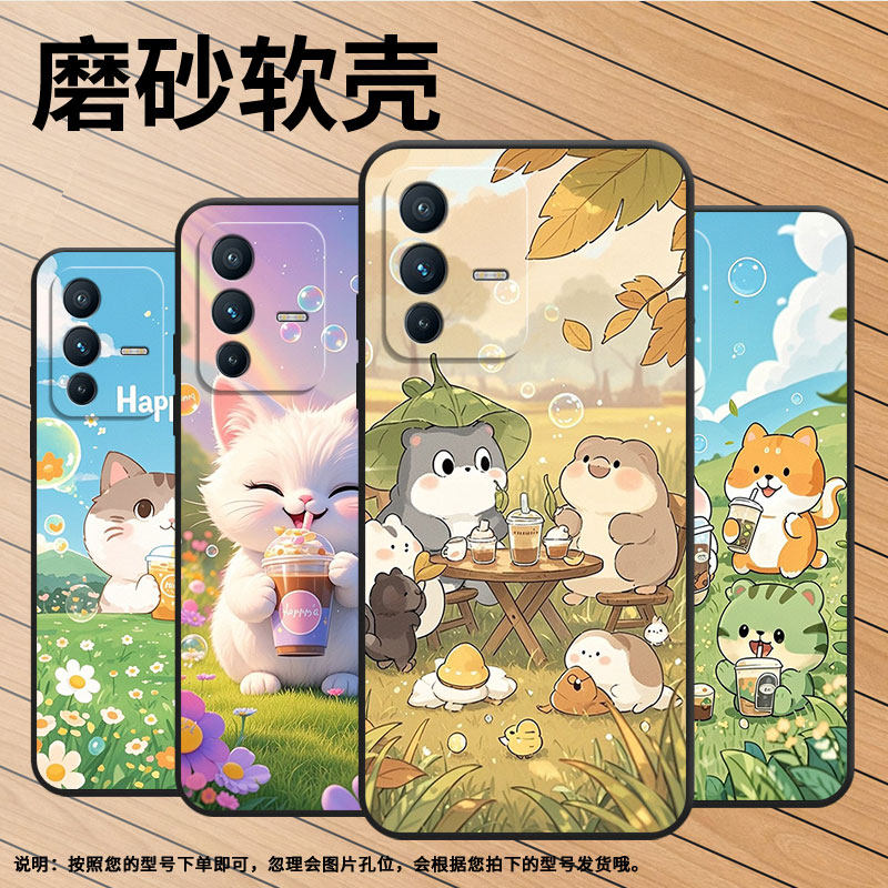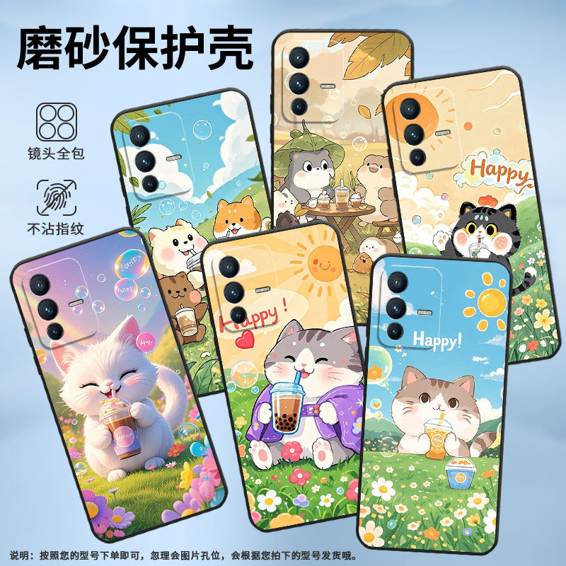 📚 适用vivov7手机壳v21/v30lite/v25磨砂v20硅胶v40se胖胖猫咪v50保护套v11卡通猫咪v27e粉色小猫v23潮流防摔