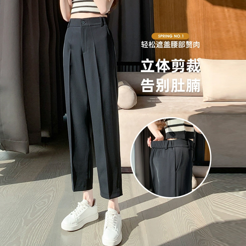 📚 冰丝西装裤女夏季薄款小个子八分雪纺宽松直筒九分哈伦烟管裤大码