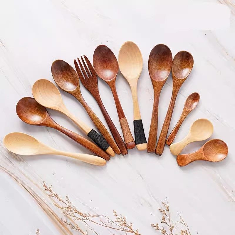 📚 勺子日式木制家用实木餐具调羹创意蜂蜜勺咖啡勺汤勺饭勺小木勺子