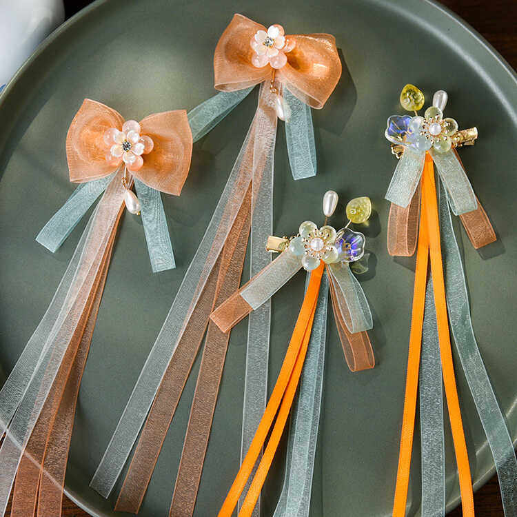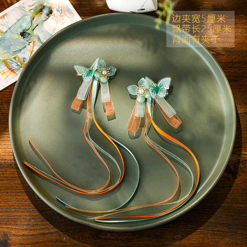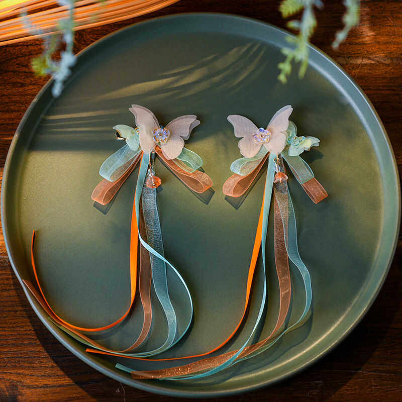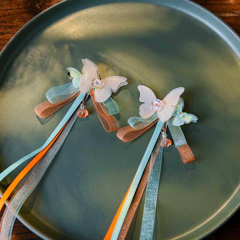 📚 小女孩头上装饰中国风唐装幼儿舞蹈表演服流苏蝴蝶飘带头饰发饰