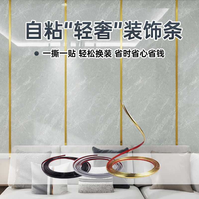 📚 墙布美缝贴条美缝条边框装饰线条金色封边条墙缝装饰条自粘美