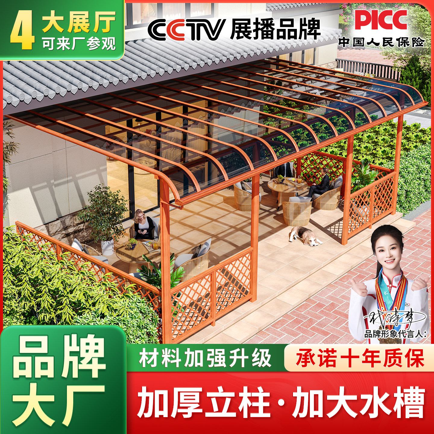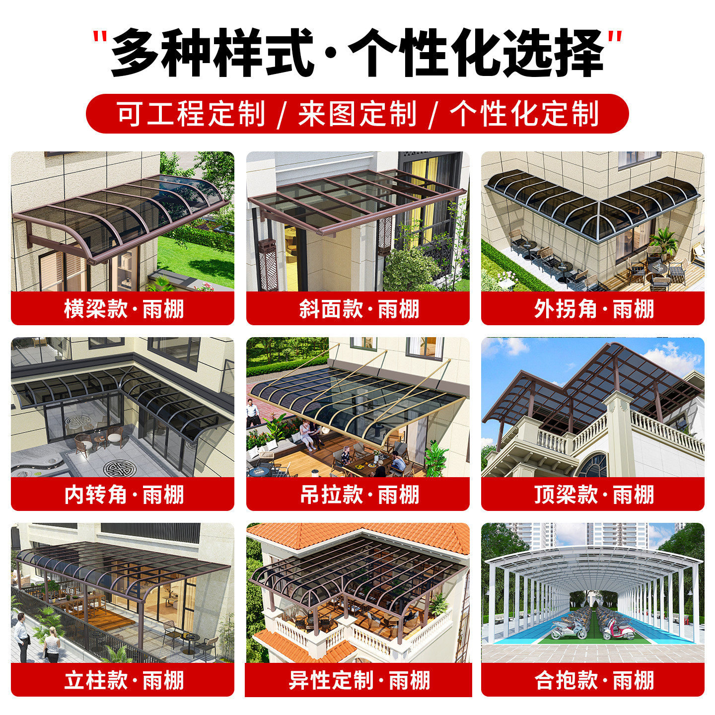 📚 露天阳台遮雨棚家用顶棚户外庭院铝合金屋檐防雨棚源头厂家定制
