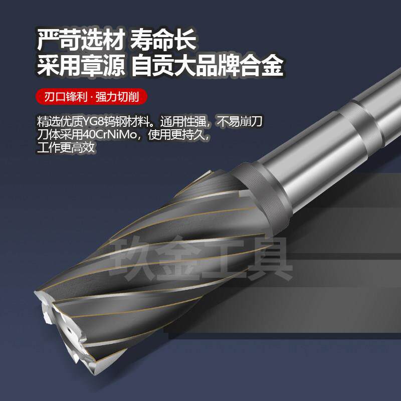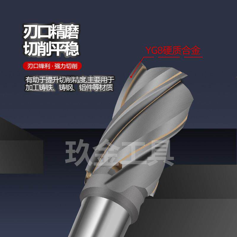 📚 YG8镶硬质合金锥柄螺旋刃铣刀D12-80焊接钨钢4刃6刃螺旋立铣刀K30