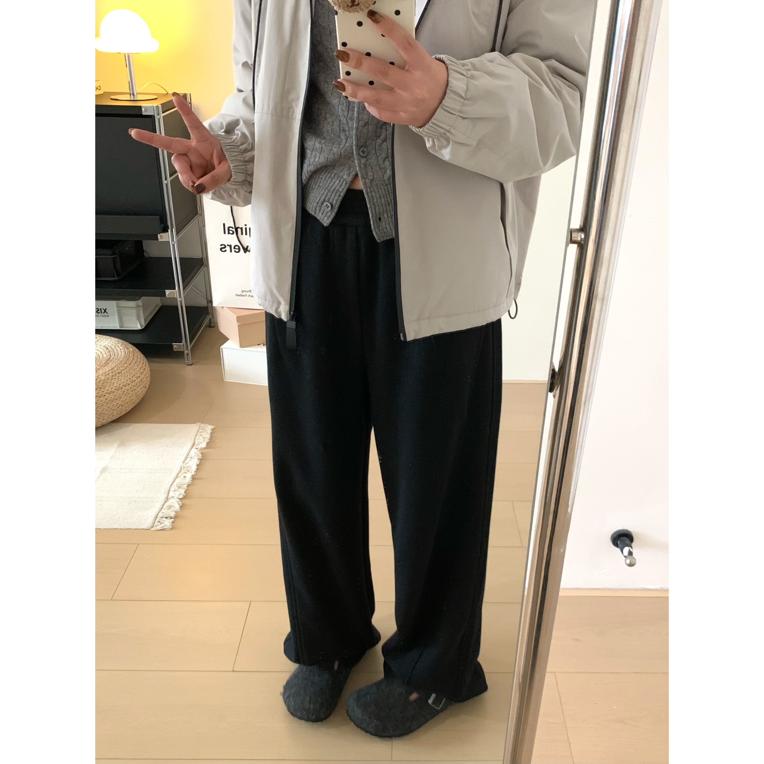📚 XFYSTYLE_醋酸羊毛垂感显瘦弯刀休闲裤女2025冬高腰宽松直筒长裤