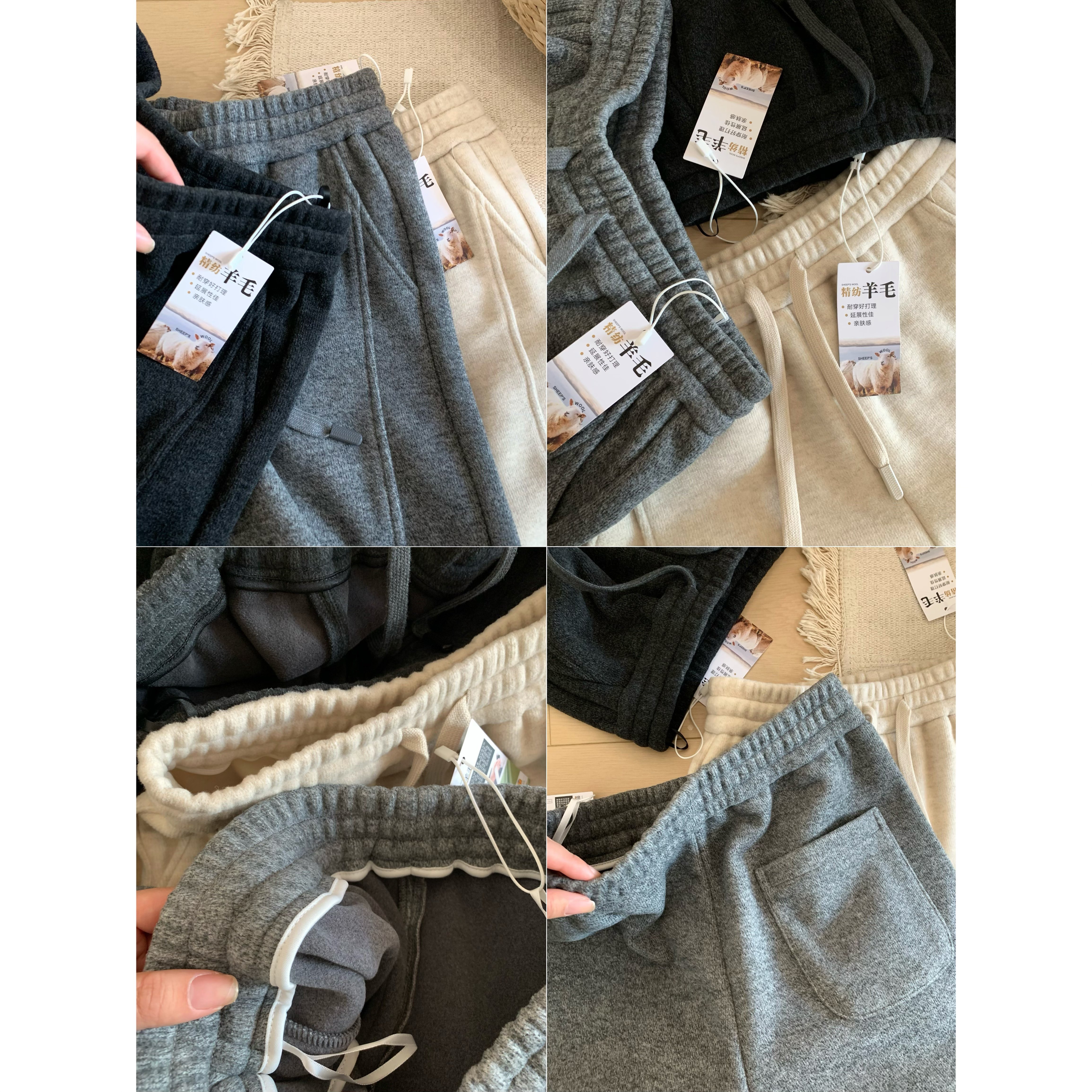 📚 XFYSTYLE_750g双面绒加厚 醋酸羊毛呢垂感显瘦窄版直筒休闲长裤女