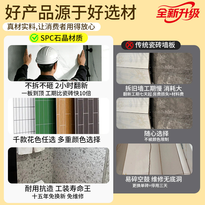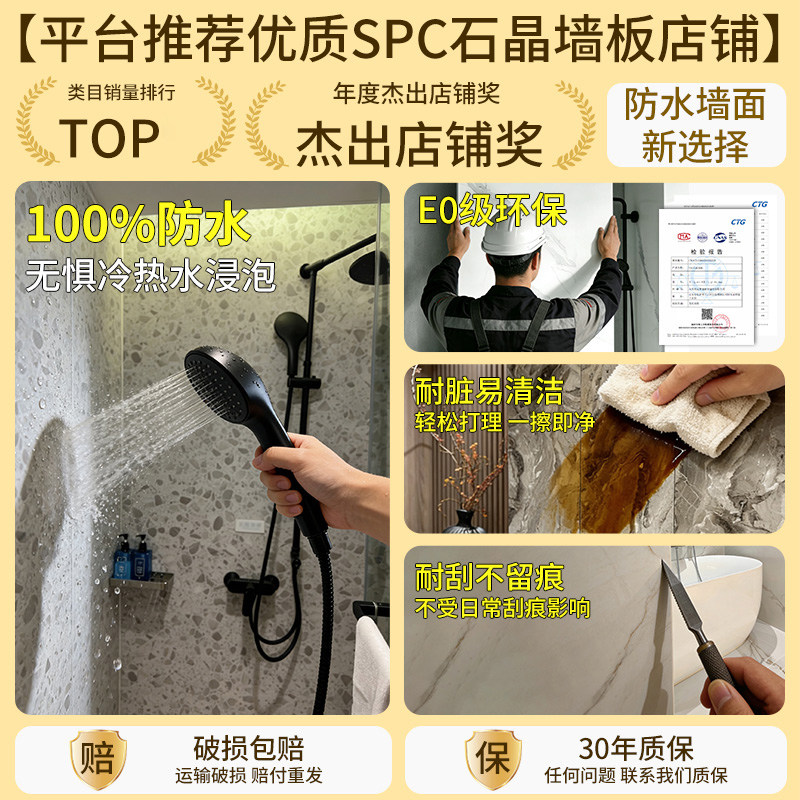 📚 spc石晶墙板酒店卫生间墙面石塑护墙板spc仿瓷砖快装防水防潮装饰